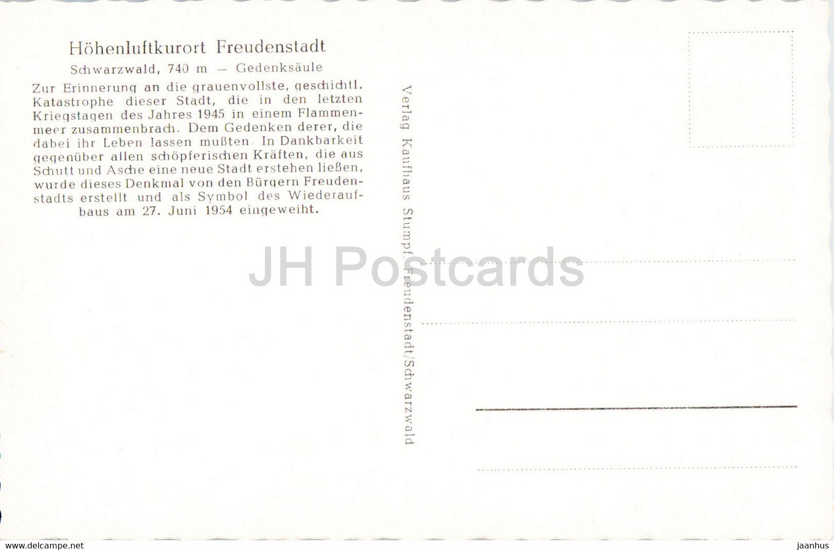 Hohenluftkurort Freudenstadt - Gedenksäule - Denkmal - alte Postkarte - Deutschland - unbenutzt
