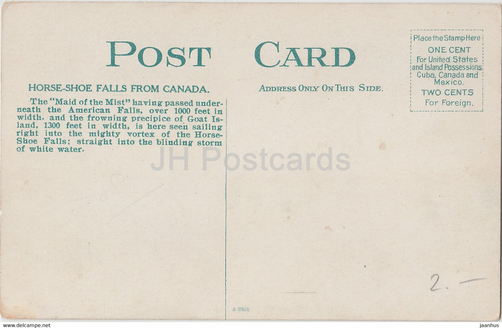 Horseshoe Falls aus Kanada - Niagarafälle - Dampfer - Boot - alte Postkarte - Kanada - unbenutzt