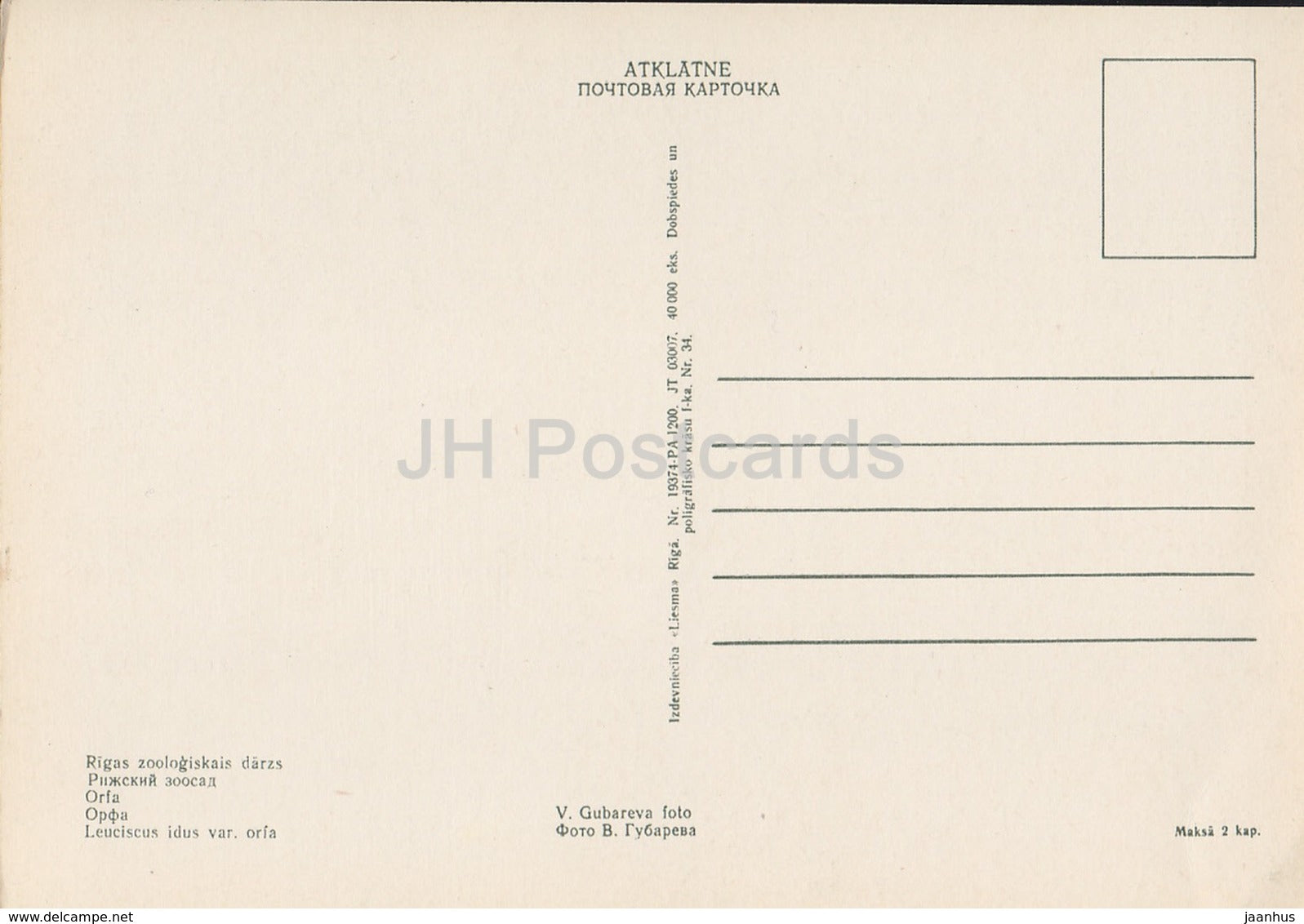 Ide - Leuciscus idus - Fisch - Rigaer Zoo - alte Postkarte - Lettland UdSSR - unbenutzt