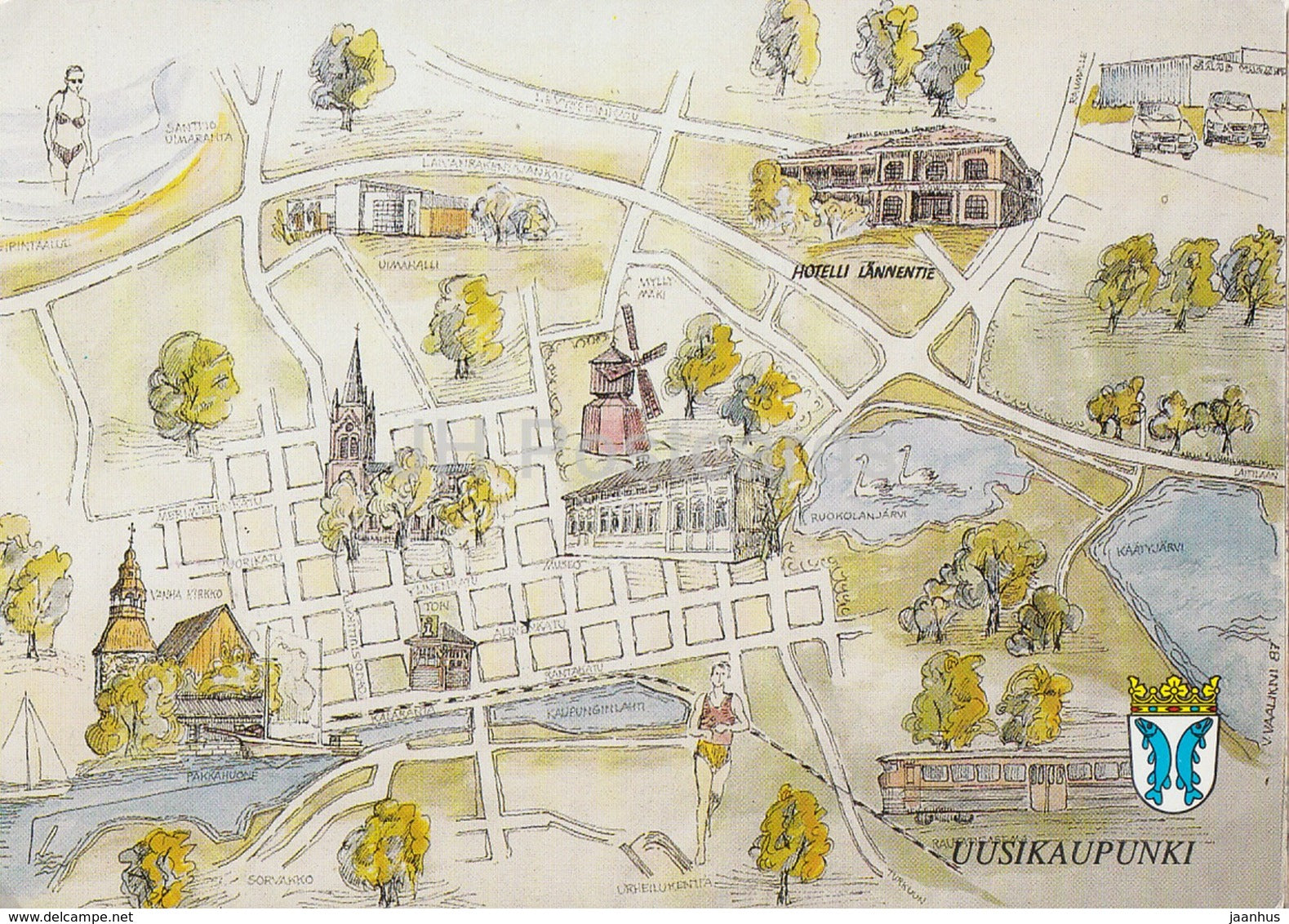 illustrierte Uusikaupunki-Karte von P. Vaalikivi – 1987 – Stadtplan – Finnland – unbenutzt