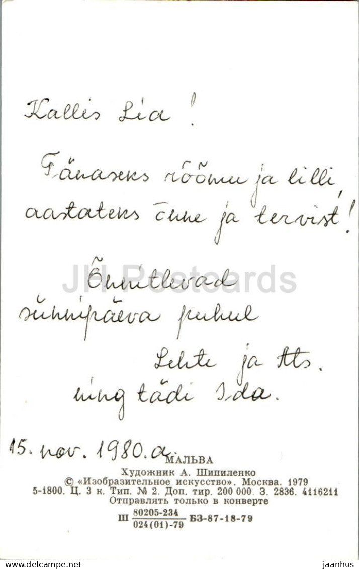 Illustration von A. Shipilenko - Malve - Blumen - Illustration - 1979 - Russland UdSSR - gebraucht