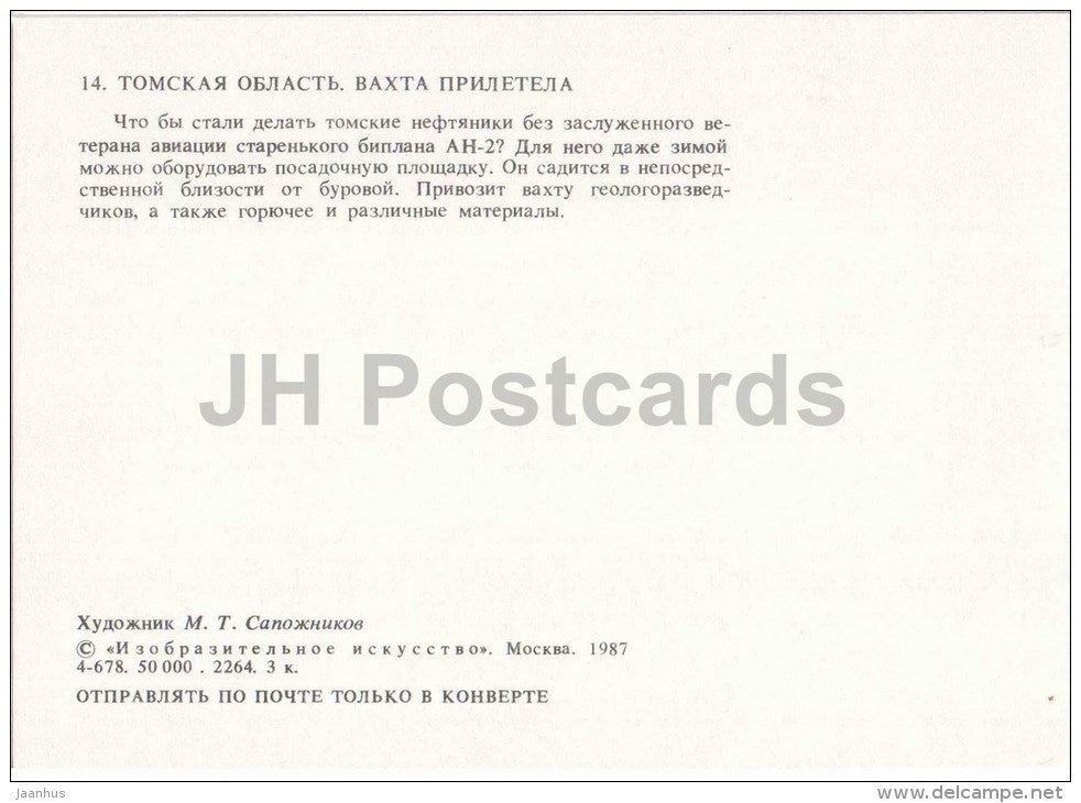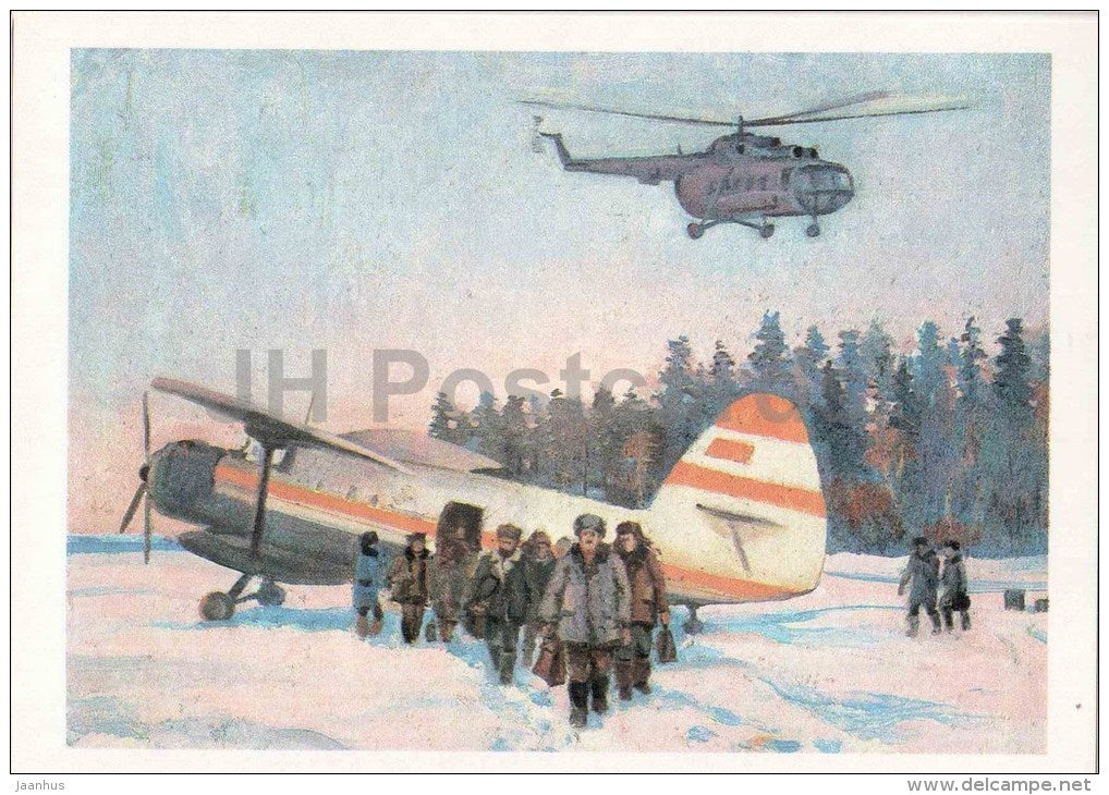 Illustration von M. Sapozhnikov – Flugzeug – Hubschrauber – Oblast Tomsk – 1987 – Russland UdSSR – unbenutzt