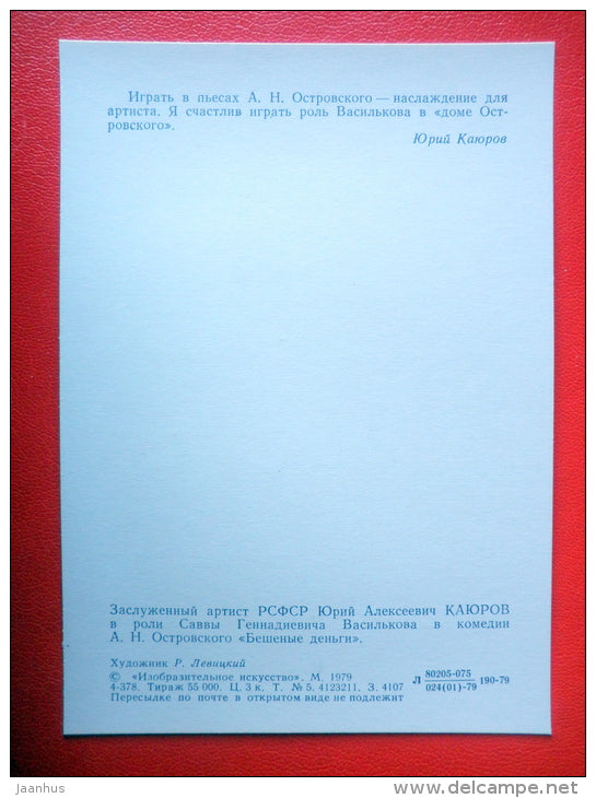 Illustration von R. Levitsky – Schauspieler Yuri Kayurov – Maly-Theater in Moskau – 1979 – Russland UdSSR – unbenutzt