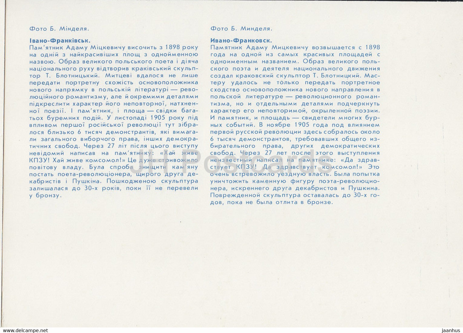 Iwano-Frankiwsk - Adam-Mickiewicz-Denkmal - unvergessliche Orte der Region Iwano-Frankiwsk - 1988 - Ukraine UdSSR - unbenutzt