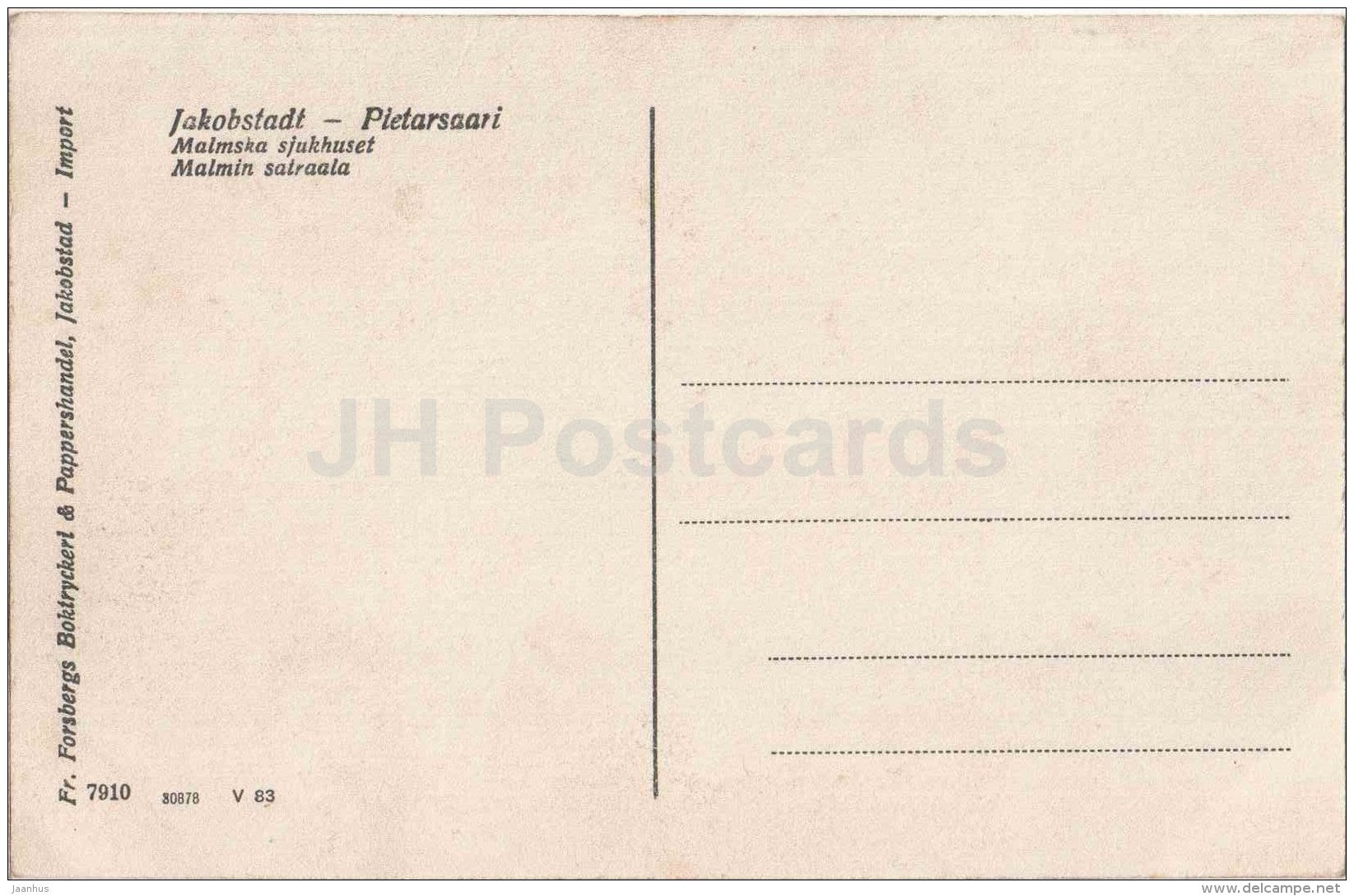 Jakobstadt - Pietarsaari - Malmska sjukhuset - Malmin satraala - Finnland - 7910 - alte Postkarte - unbenutzt