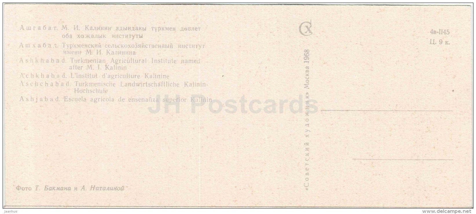 Kalinin Agricultural Institute – Ashkhabad – Ashgabat – 1968 – Turkmenistan UdSSR – unbenutzt