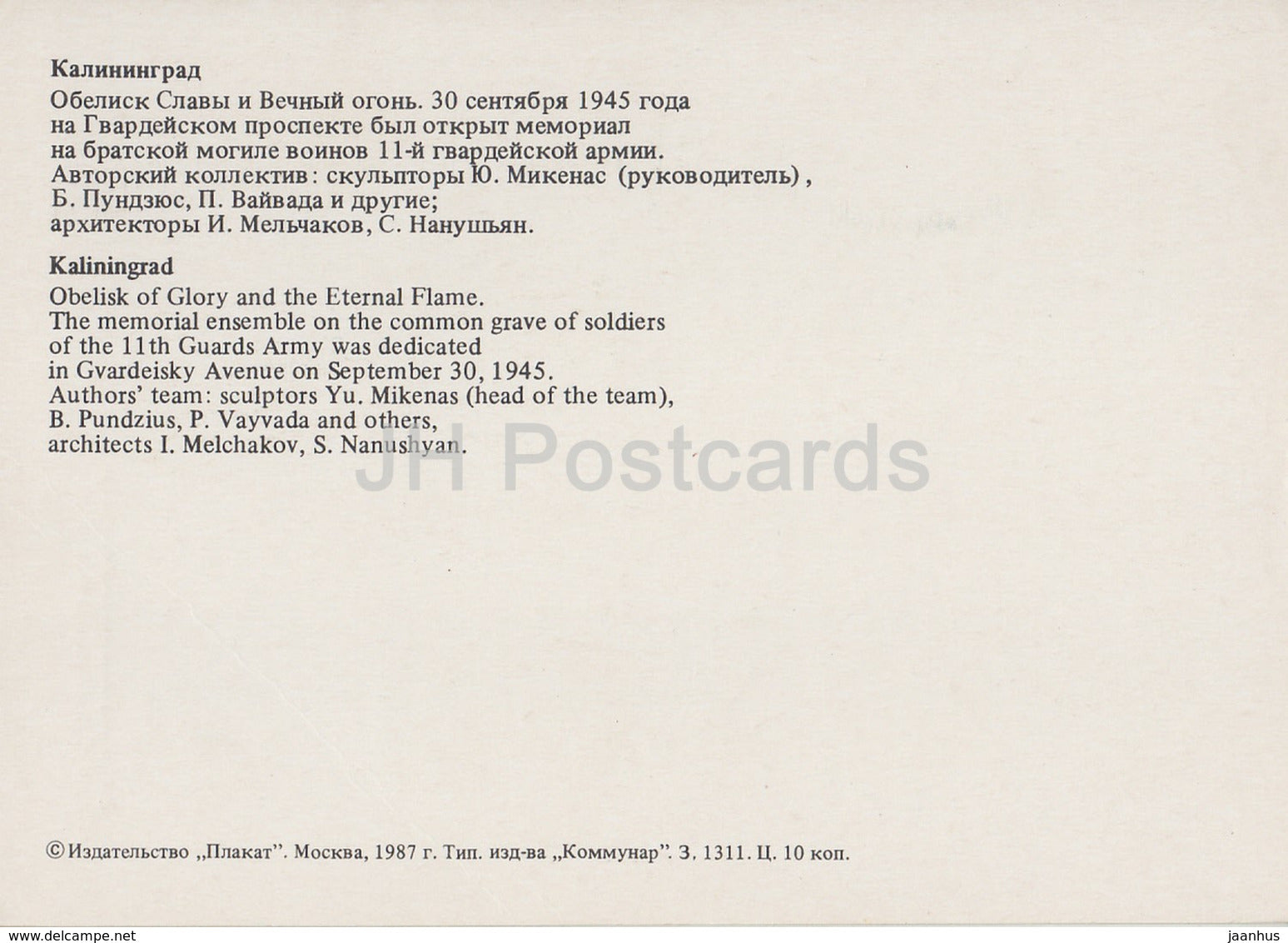 Kaliningrad – Königsberg – Obelisk der Herrlichkeit und der Ewigen Flamme – 1987 – Russland UdSSR – unbenutzt