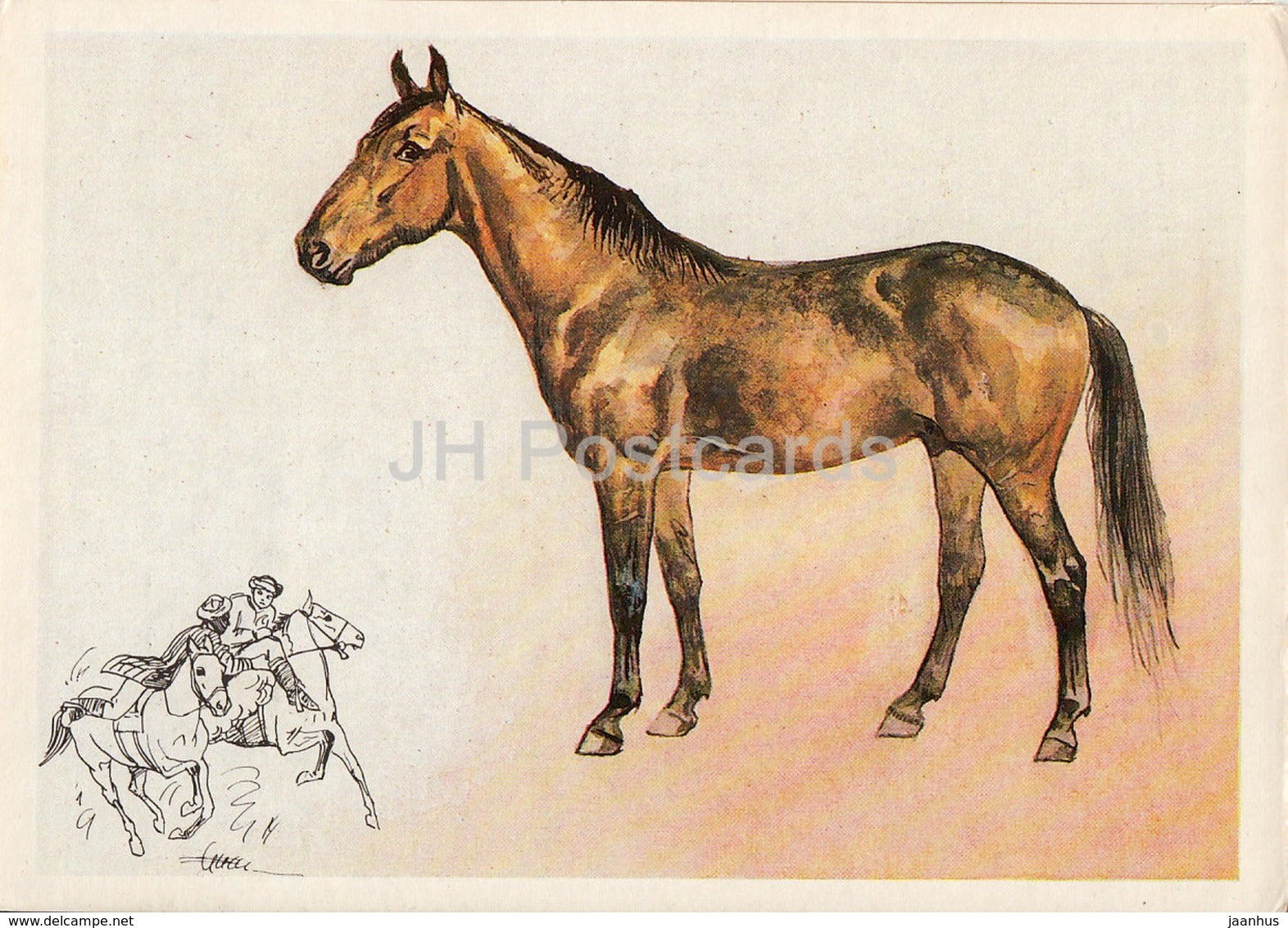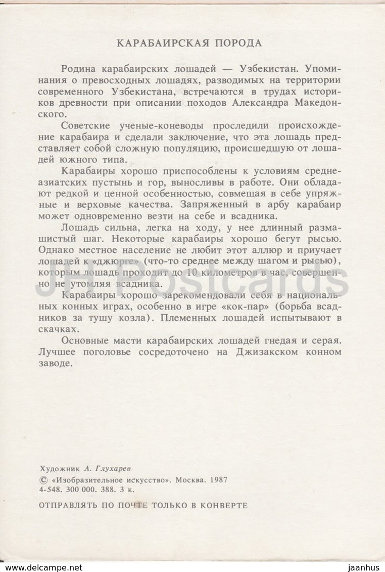 Karabair-Pferd – Illustration von A. Glukharev – Pferde – Tiere – 1988 – Russland UdSSR – unbenutzt