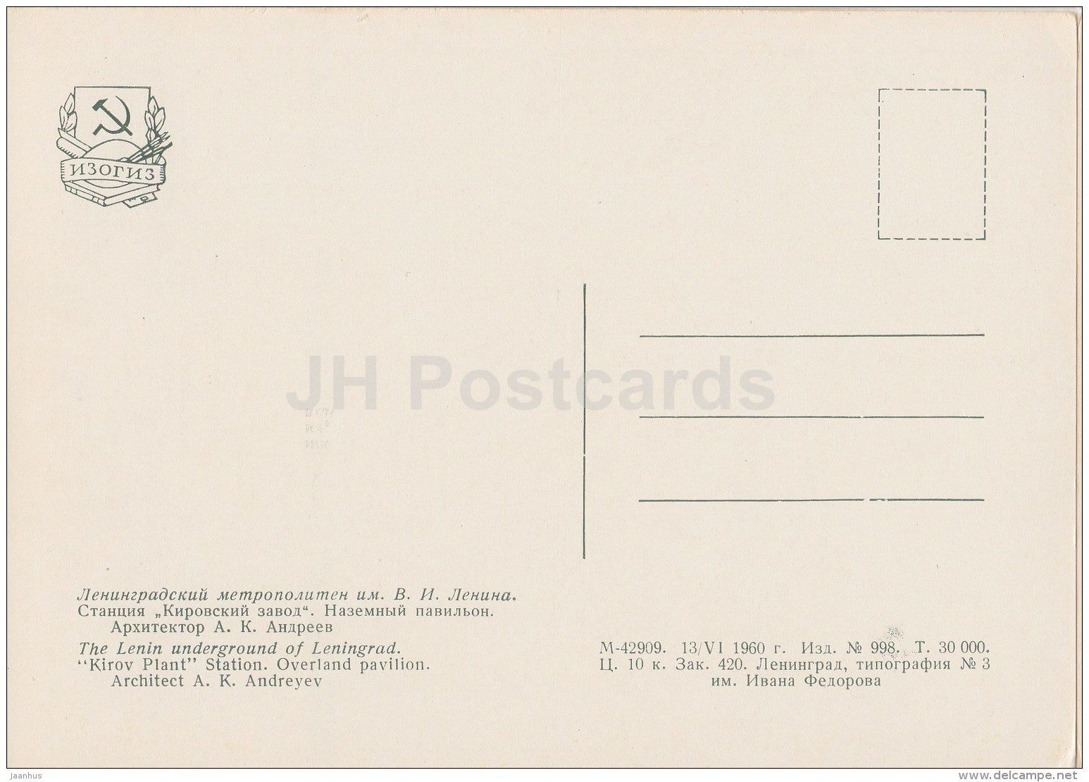 Kirov Plant Station, Pavillon - Leningrad Metro - U-Bahn - St. Petersburg - 1960 - Russland UdSSR - unbenutzt