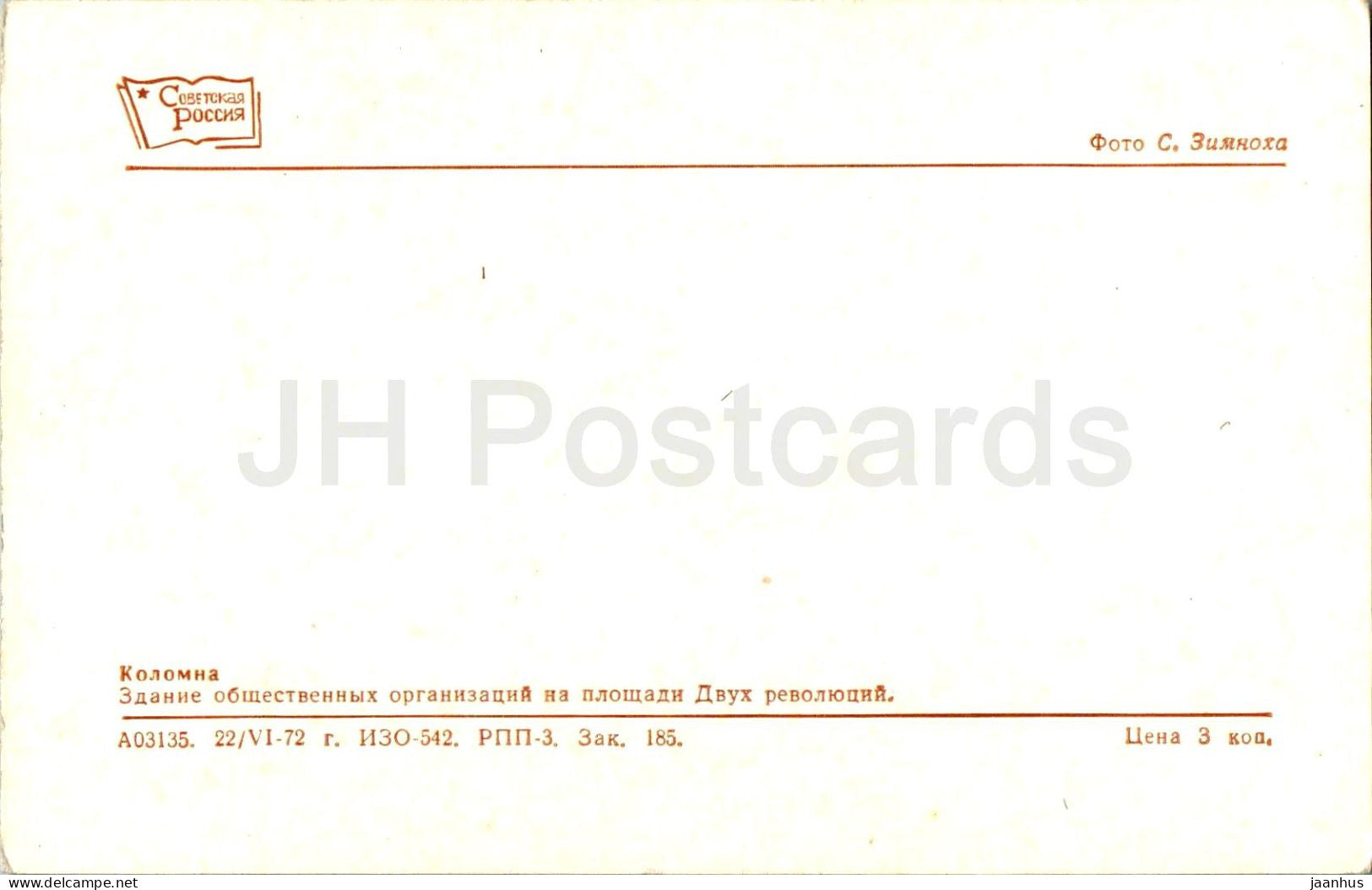 Kolomna - Gebäude der öffentlichen Organisationen auf dem Platz der zwei Revolutionen - Auto Wolga - 1972 - Russland UdSSR - unbenutzt