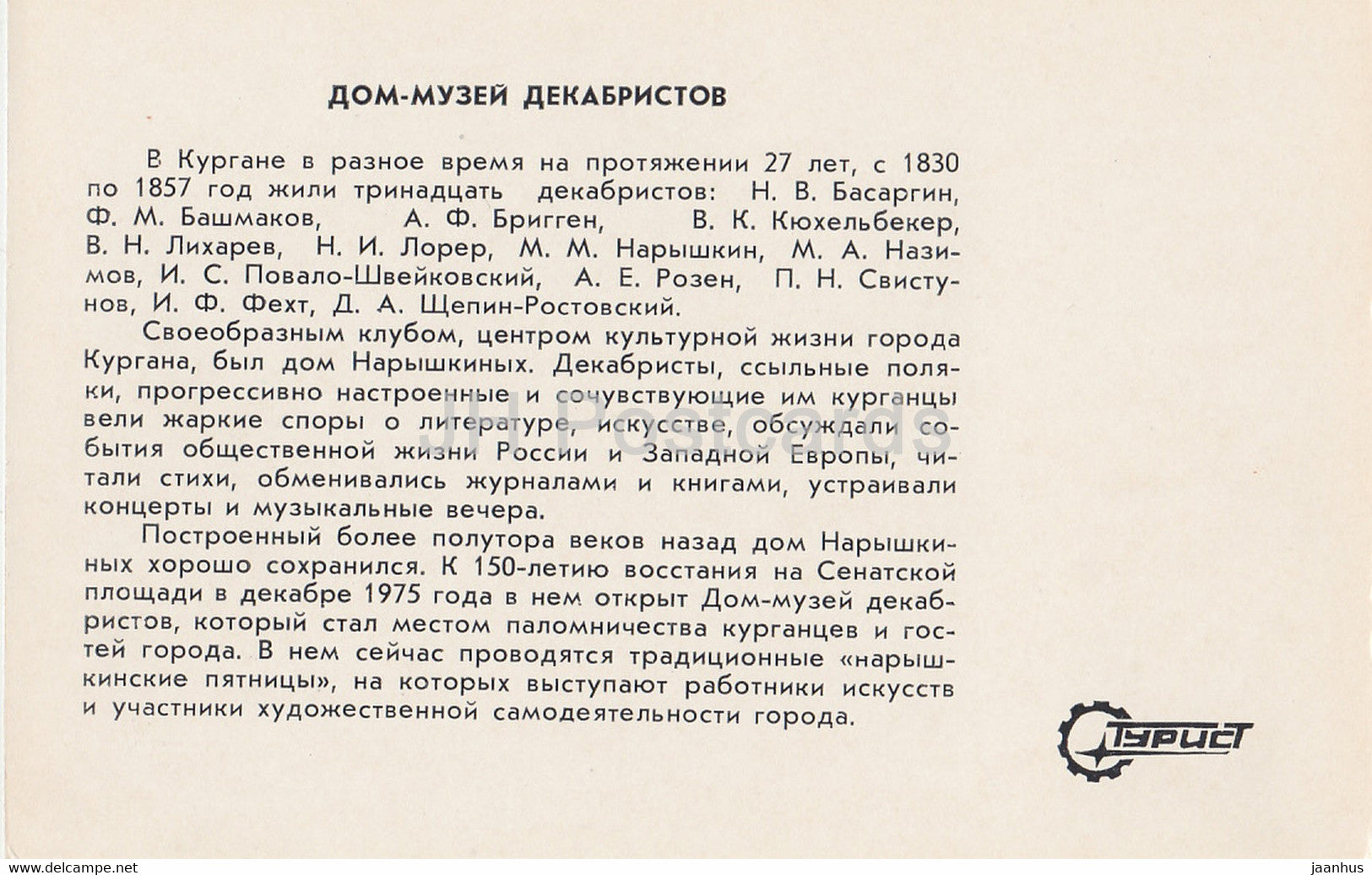 Kurgan – Hausmuseum der Dekabristen – Turist – 1982 – Russland UdSSR – unbenutzt