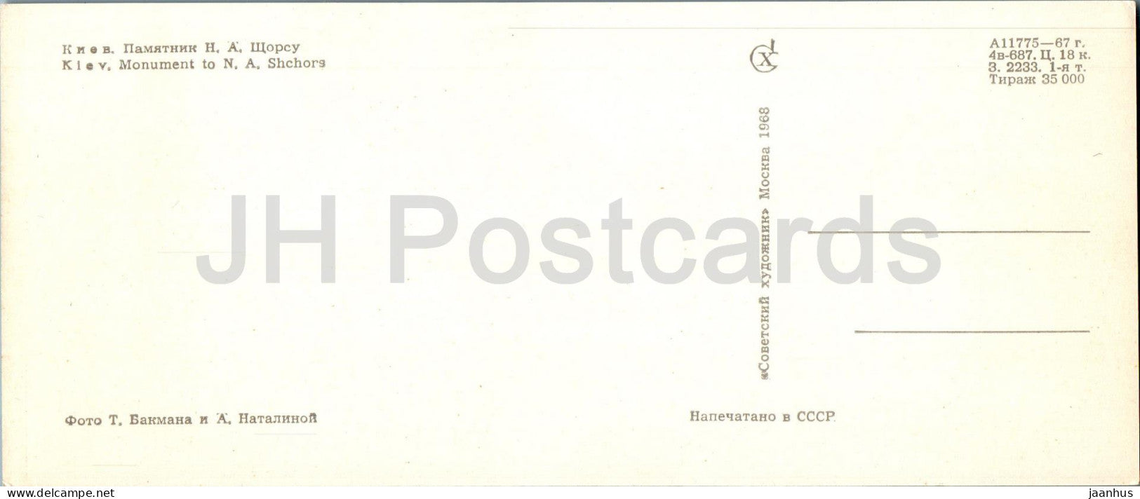 Kiew - Kiew - Denkmal für M. Schors - Pferd - Bus - 1968 - Ukraine UdSSR - unbenutzt