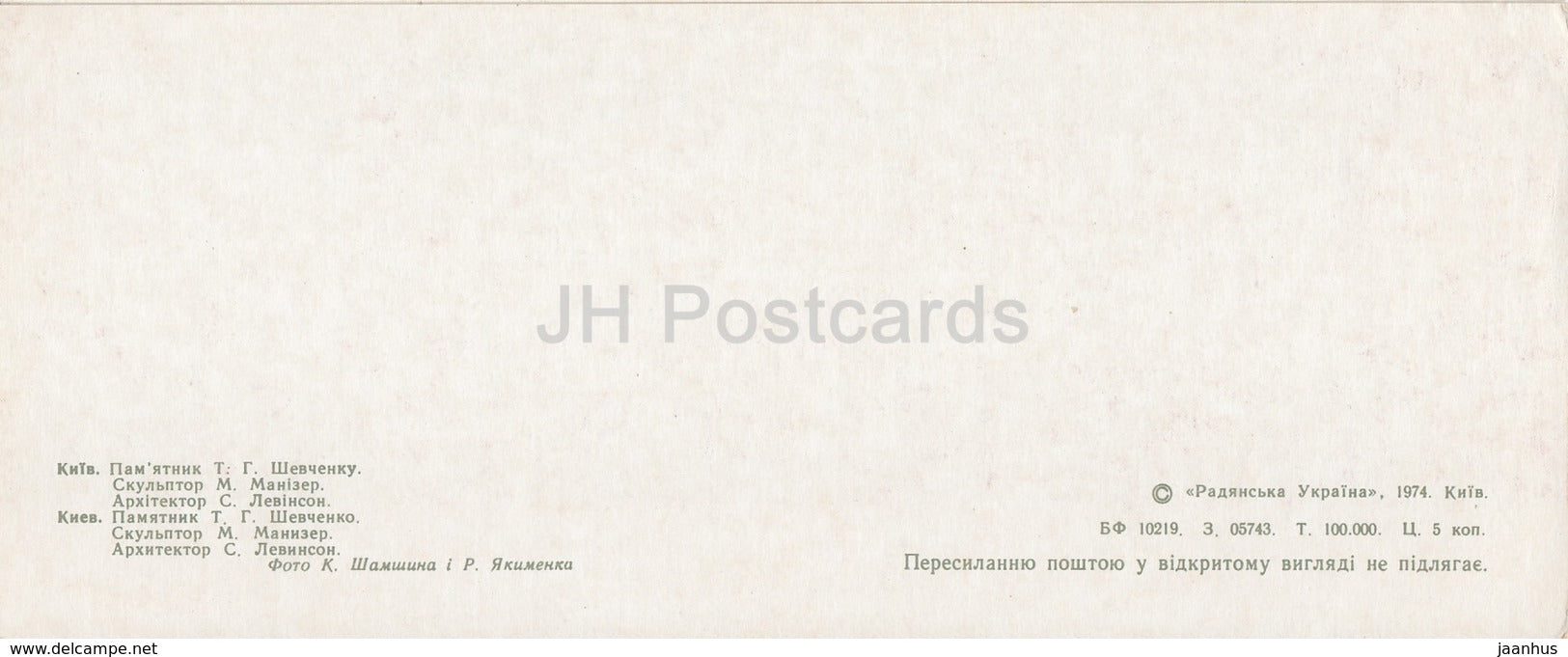Kiew - Kiew - Denkmal für den ukrainischen Schriftsteller T. Shevchenko - 1974 - Ukraine UdSSR - unbenutzt