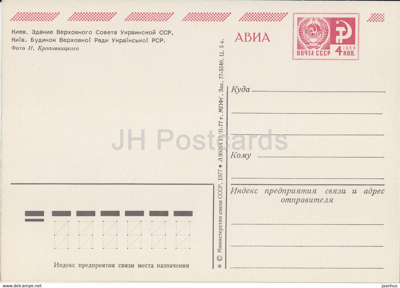 Kiew - Kiew - Oberster Sowjet der Ukrainischen SSR - AVIA - Ganzsache - 1977 - Ukraine UdSSR - unbenutzt