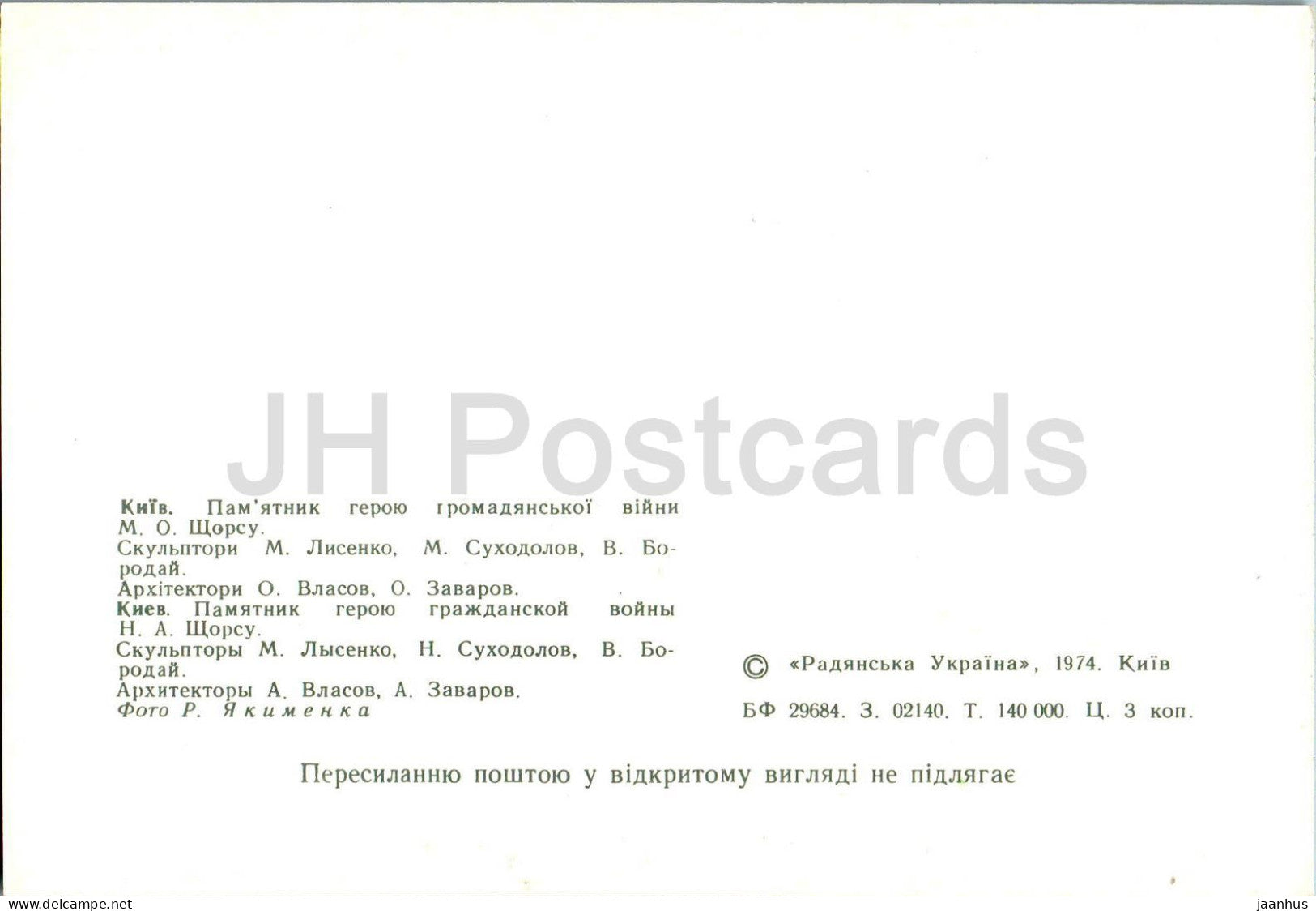 Kiew - Denkmal für den Helden des Bürgerkriegs Shchors - Pferd - 1974 - Ukraine UdSSR - unbenutzt
