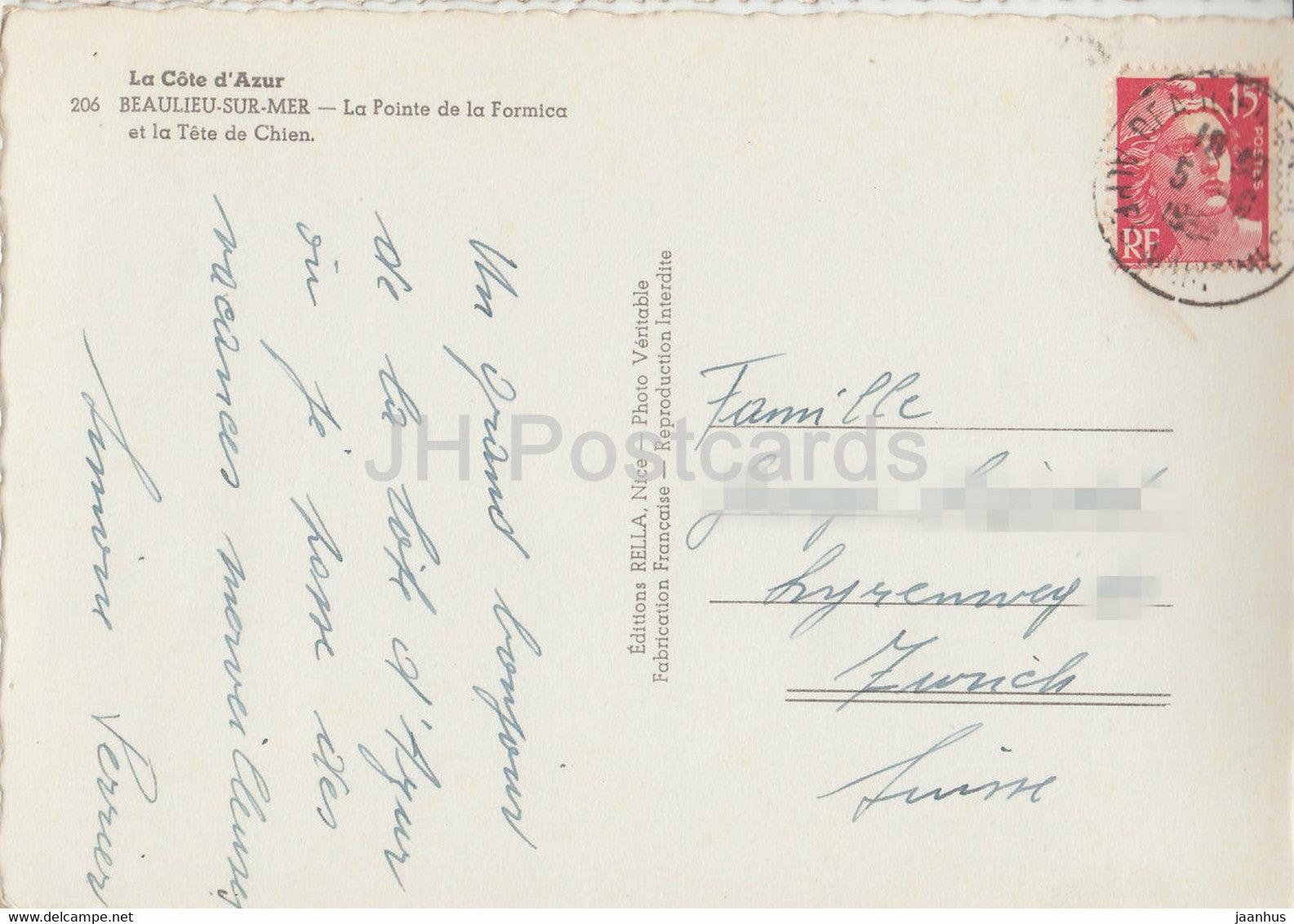 La Côte d'Azur - Beaulieu Sur Mer - La Pointe de la Formica et la Tête de Chien - alte Postkarte - 1950er Jahre - Frankreich - gebraucht