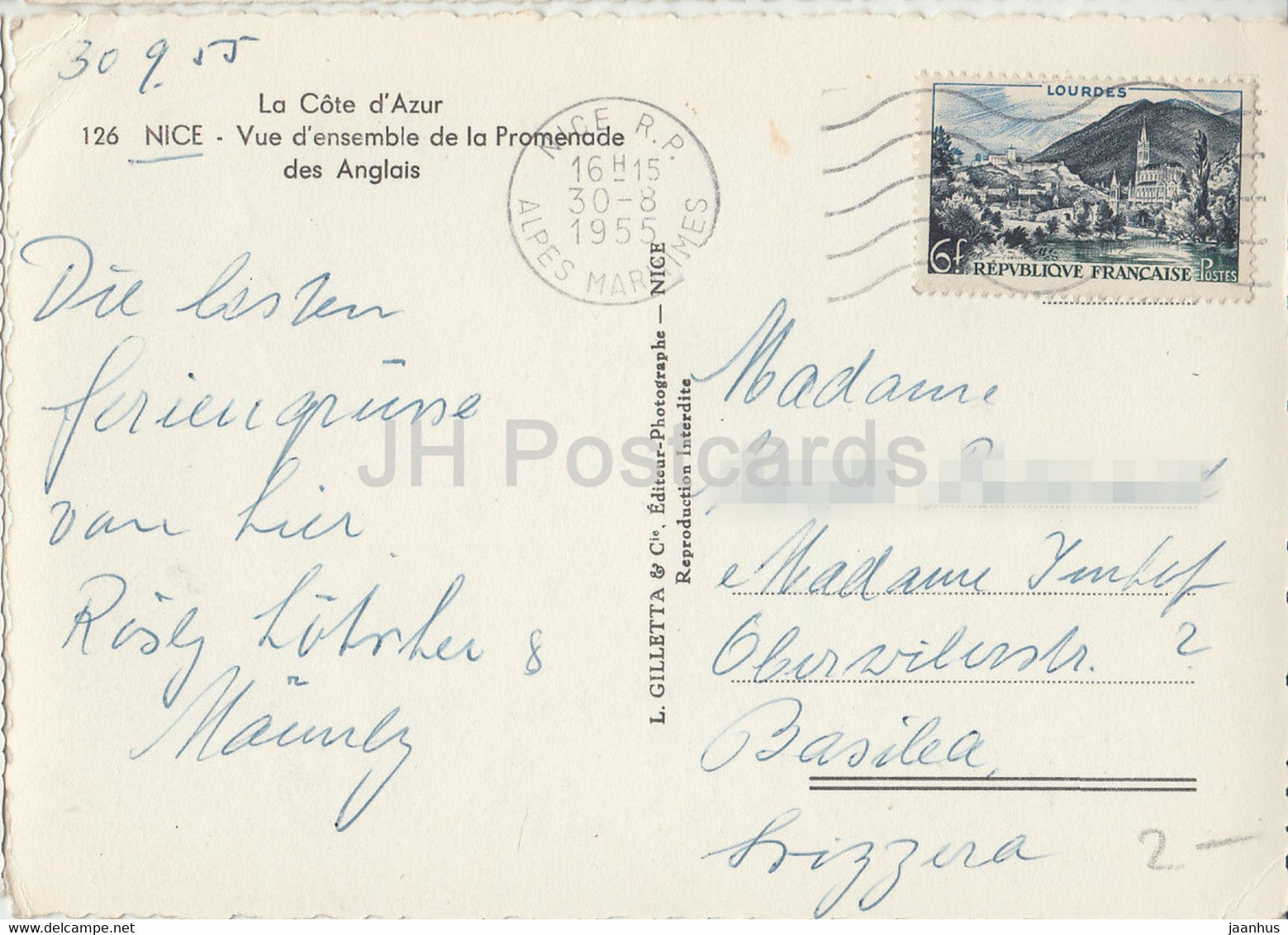 La Côte d'Azur - Nizza - Vue d'ensemble de la Promenade des Anglais - Auto - alte Postkarte - 1955 - Frankreich - gebraucht