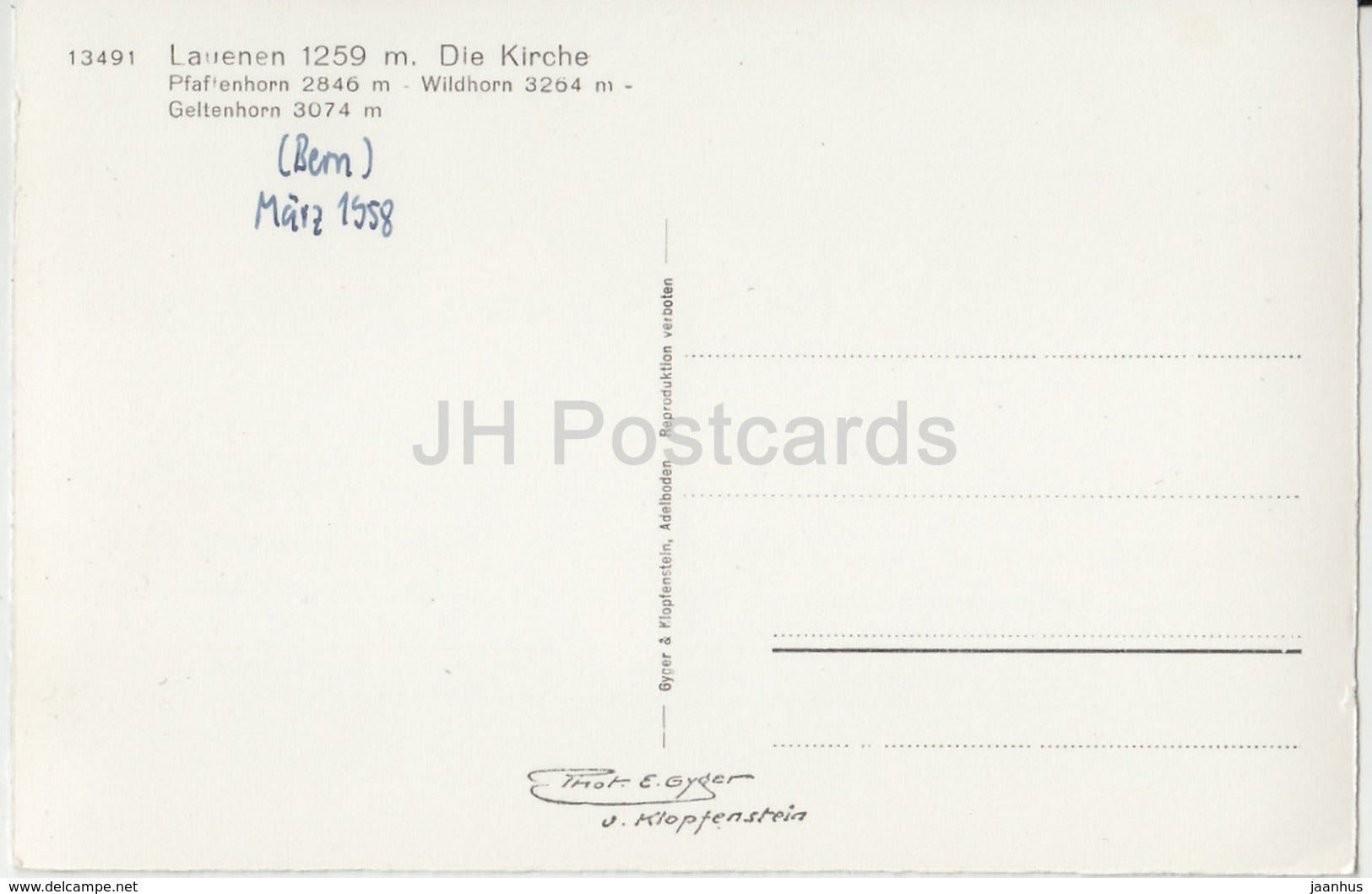 Lauenen 1259 m - Die Kirche - Wildhorn - Geltenhorn - Kirche - 13491 - Schweiz - 1958 - gebraucht
