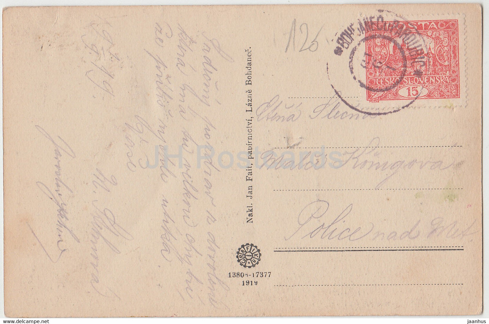 Lazne Bohdanec - Spa - Inneneinrichtung - alte Postkarte - 1919 - Tschechische Republik - gebraucht
