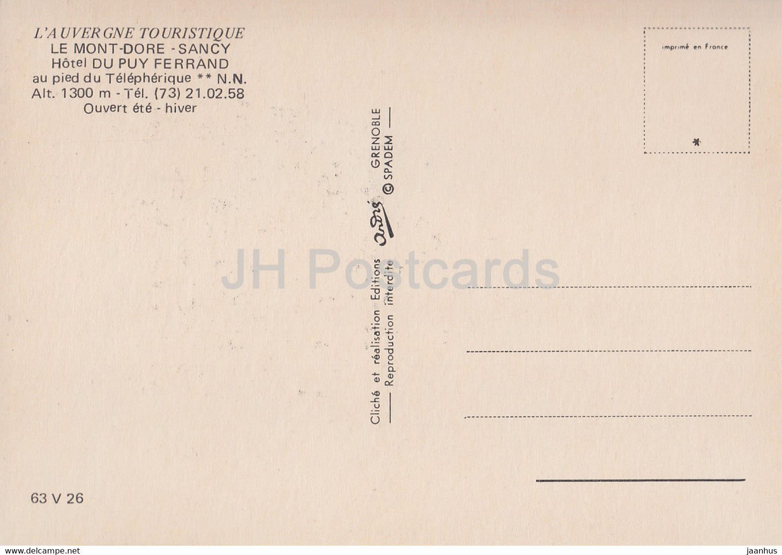 Le Mont Dore - Sancy - Hotel Du Puy Ferrand - Frankreich - unbenutzt