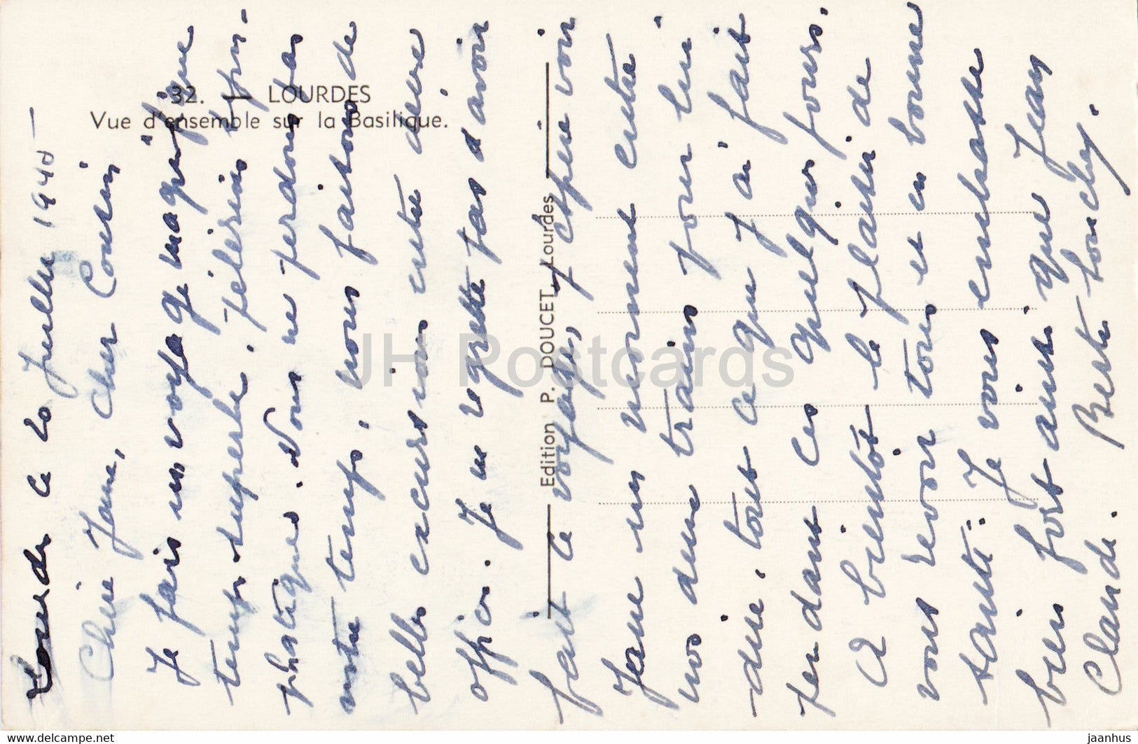 Lourdes - Vue d'ensemble sur la Basilique - 32 - alte Postkarte - 1945 - Frankreich - gebraucht