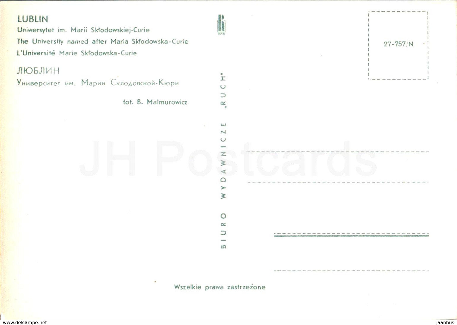 Lublin - Uniwersytet im Marii Sklodowskiej Curie - Marie Curie Sklodowska University - alte Postkarte - Polen - unbenutzt