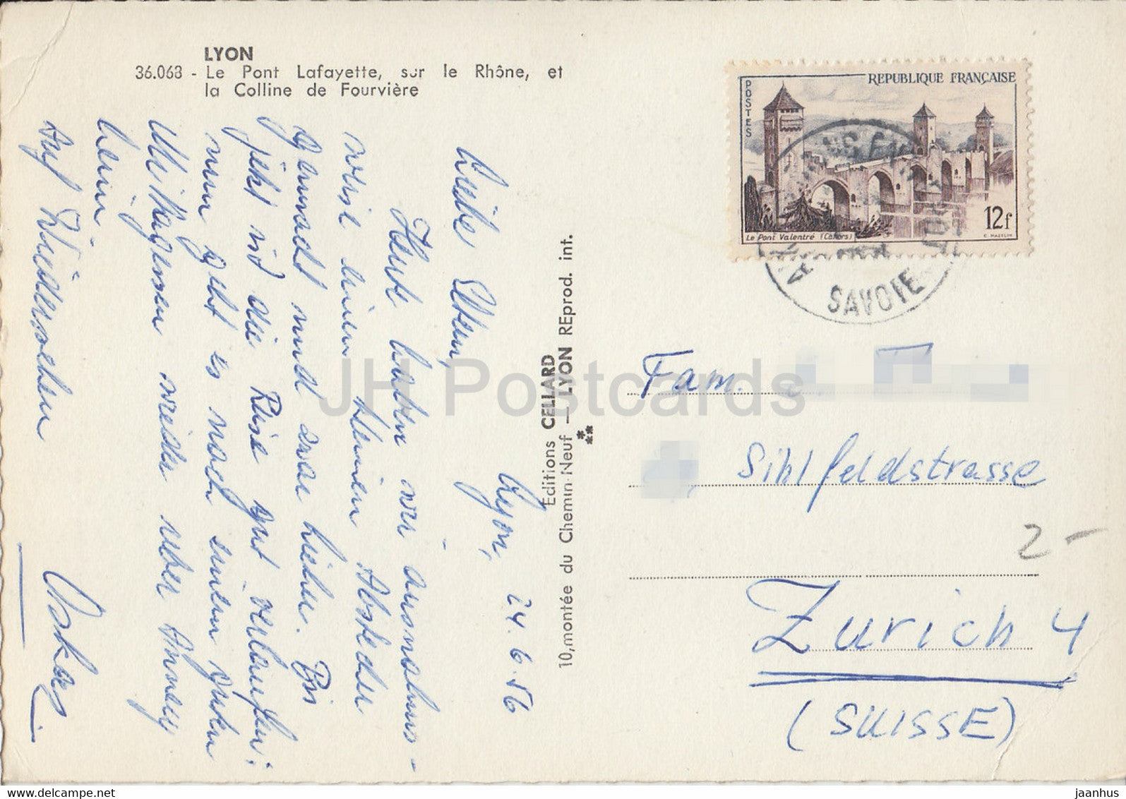 Lyon - Le Pont Lafayette sur le Rhone et la Colline de Fourviere - Brücke - Straßenbahn - alte Postkarte - 1956 - Frankreich - gebraucht