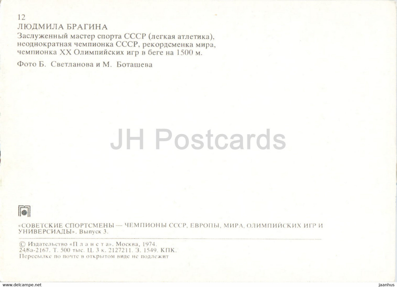 Lyudmila Bragina – Leichtathletik – Laufen – Sowjetische Meisterin – Sport – 1974 – Russland UdSSR – unbenutzt