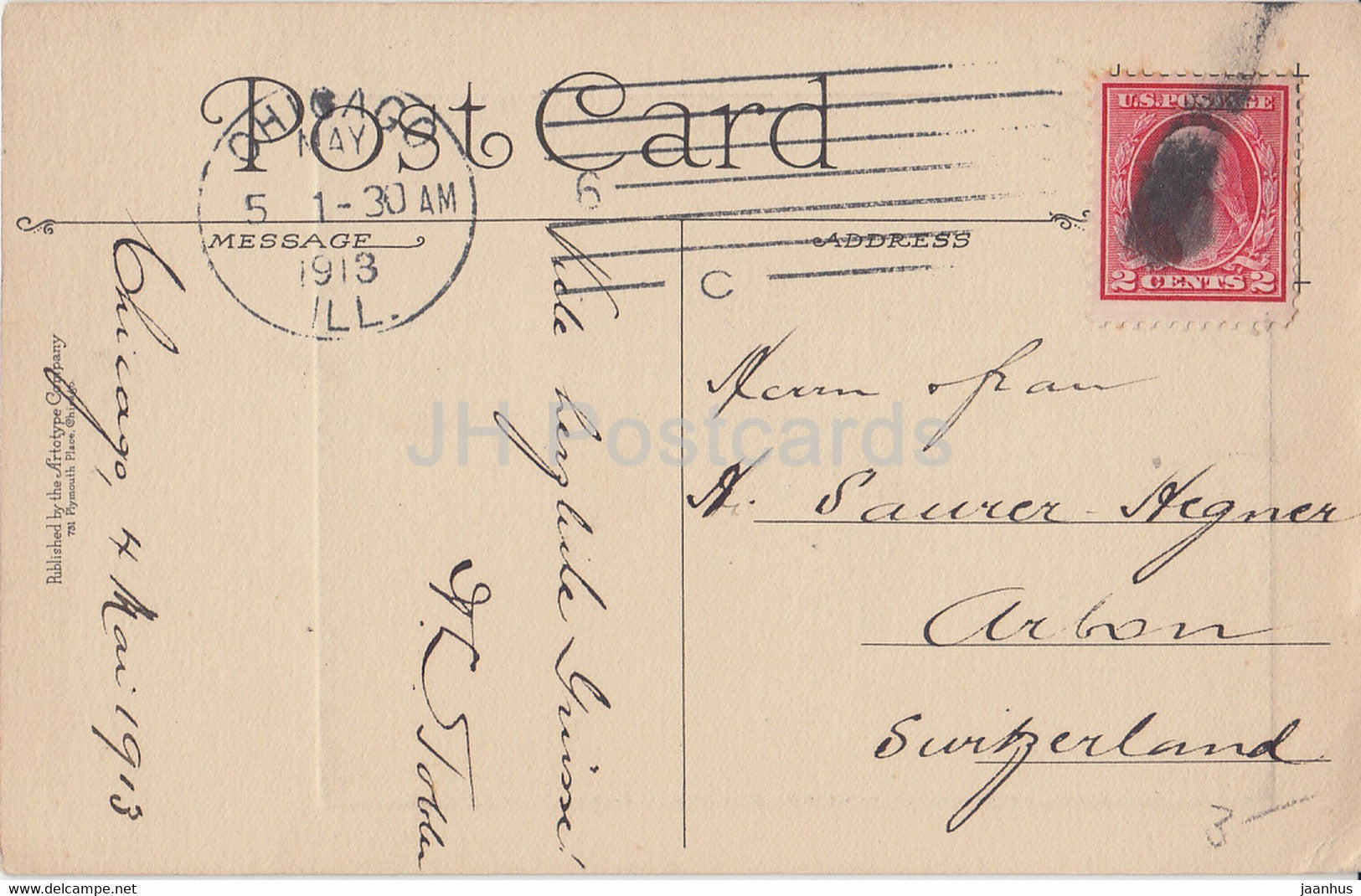 Freimaurertempel vom Fluss – Chicago River Series – Illinois – 22 – alte Postkarte – 1913 – Vereinigte Staaten USA – gebraucht