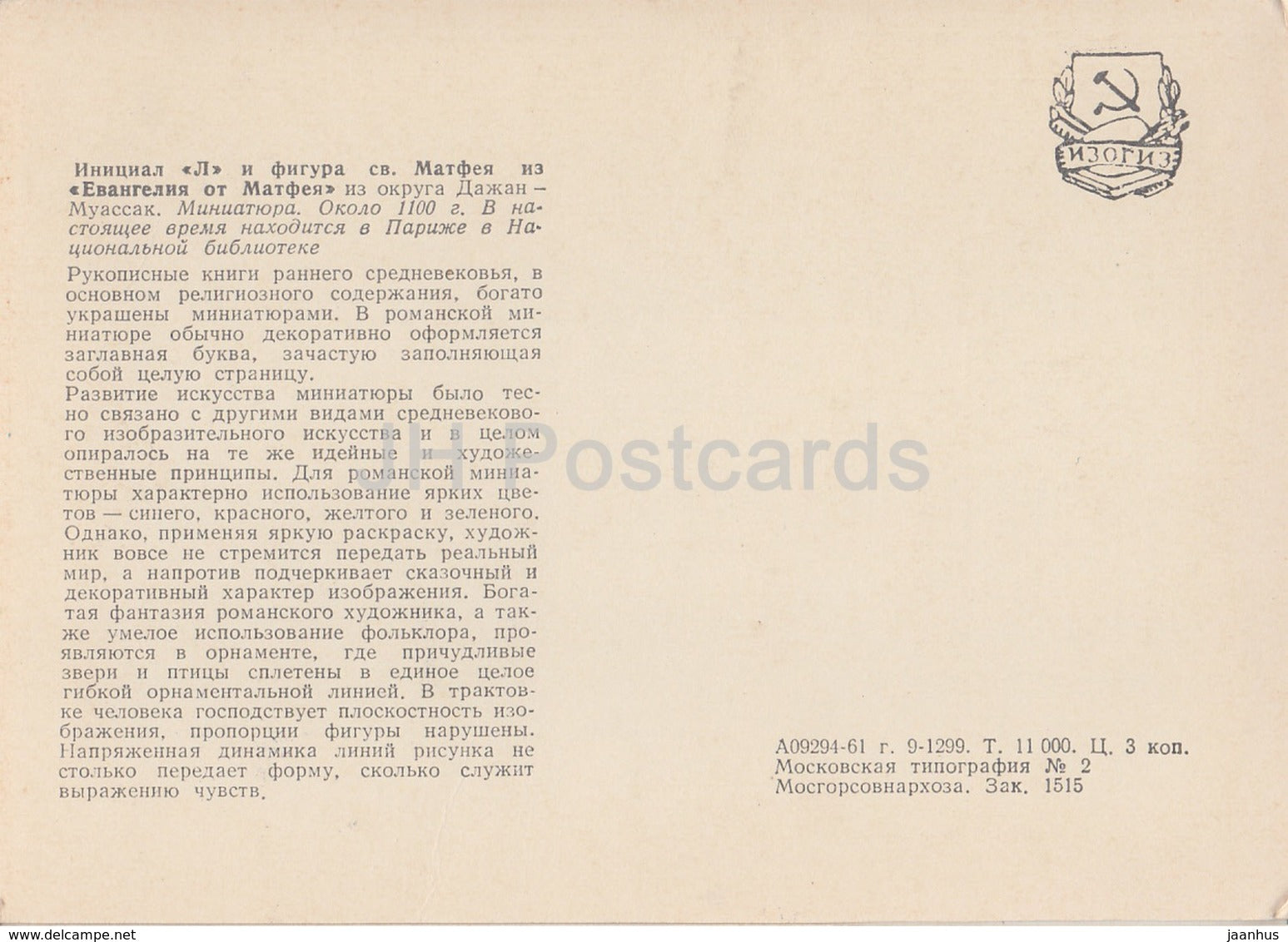 Matthäusevangelium - Buchstabe L - Altes Buch 1100 - Paris - 1961 - Russland UdSSR - unbenutzt