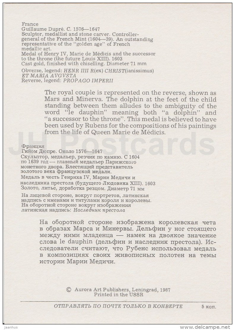 Medaille Heinrichs IV., 1603. Frankreich – Renaissance-Medaillen – 1987 – Russland UdSSR – unbenutzt
