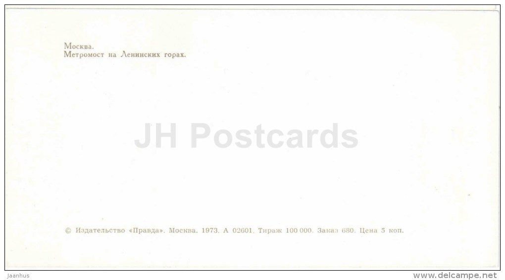 U-Bahn-Brücke auf Lenin Gorki – Moskau – 1973 – Russland UdSSR – unbenutzt