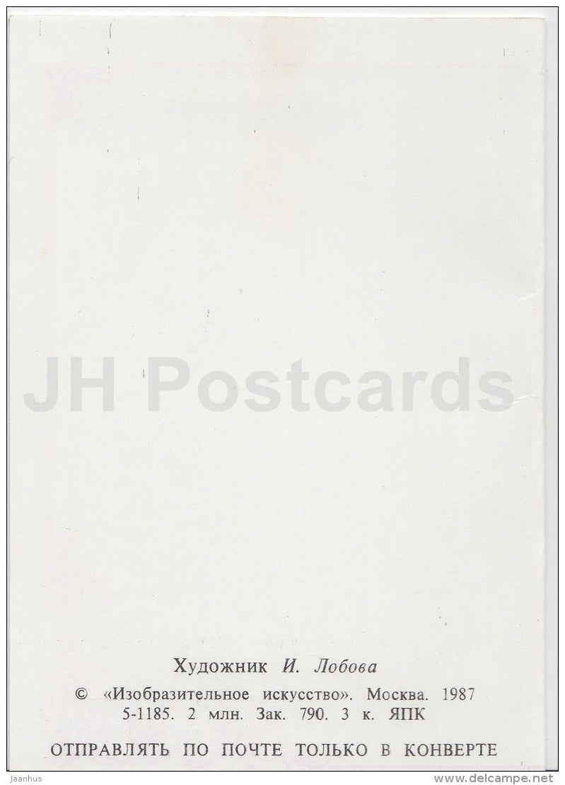 Mini-Geburtstagsgrußkarte von I. Lobova – Löwe – Blumen – 1987 – Russland UdSSR – unbenutzt