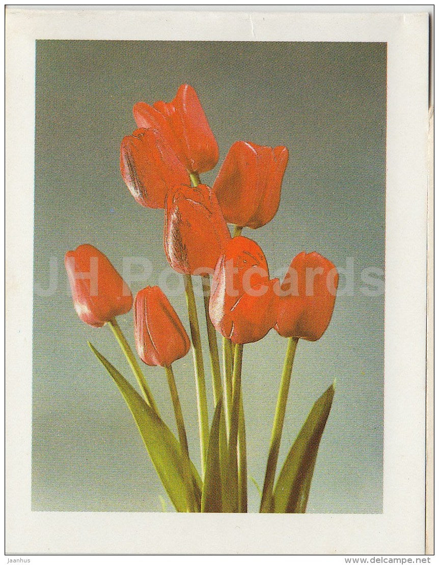 Mini-Geburtstagsgrußkarte – rote Tulpen – Blumen – 1989 – Estland UdSSR – unbenutzt