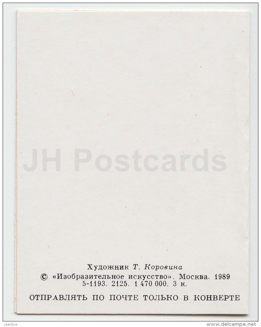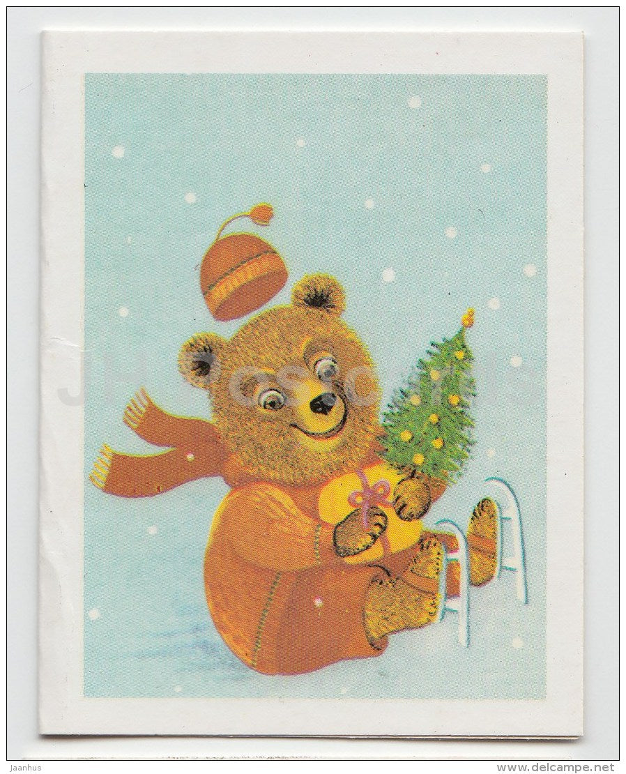 Mini-Neujahrsgrußkarte von T. Korovina – Bär – 1989 – Russland UdSSR – unbenutzt