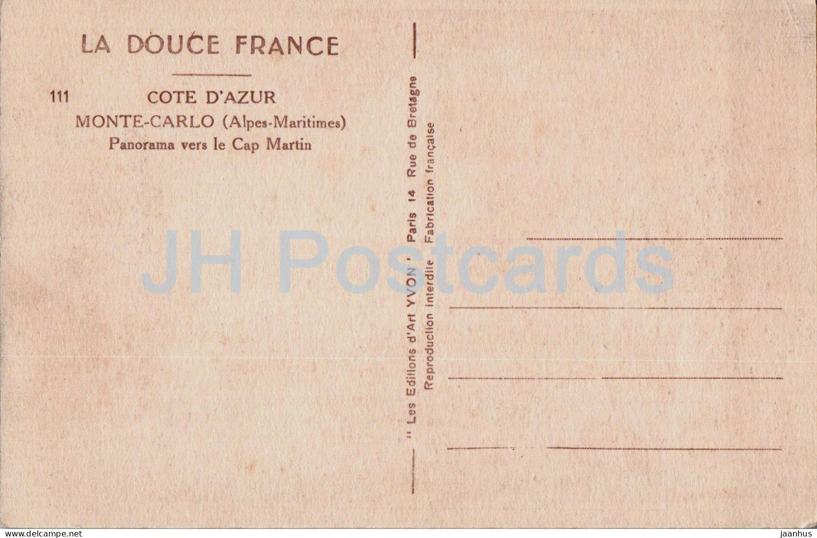Monte Carlo - Panorama vers le Cap Martin - Côte d'Azur - La Douce Frankreich - 111 - alte Postkarte - Monaco - unbenutzt