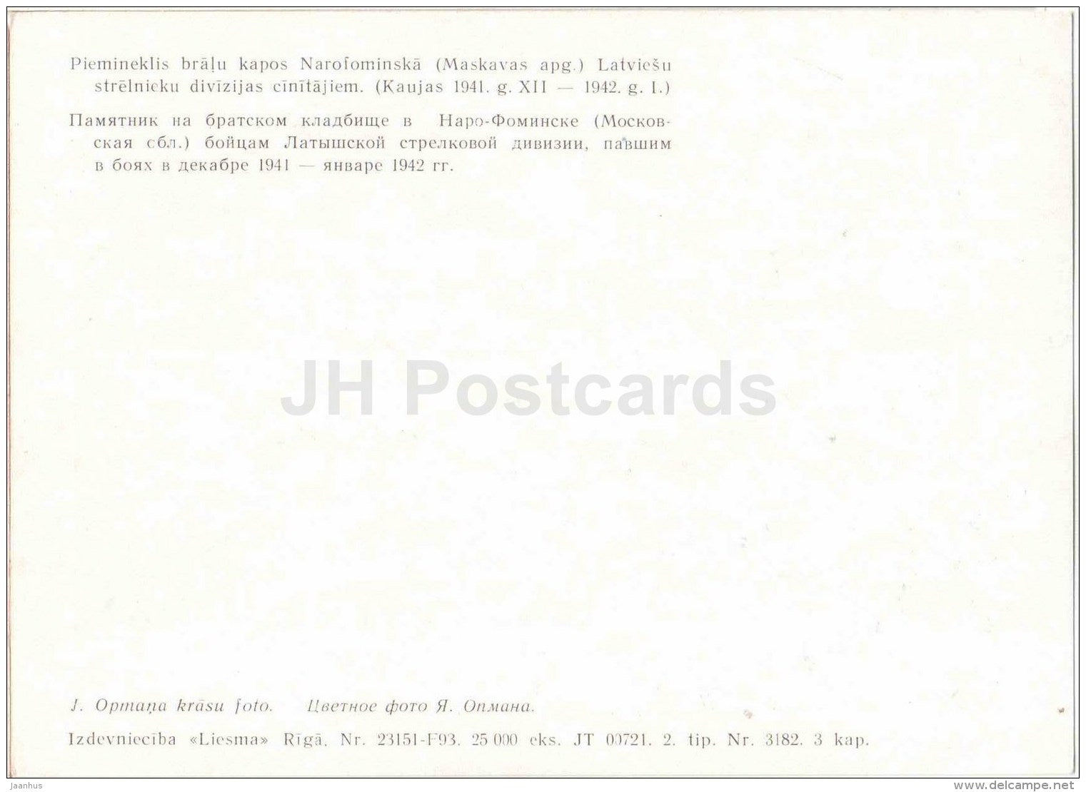 Denkmal auf dem Bruderfriedhof in Naro-Fomonsk – Lettische Schützendivision – Zweiter Weltkrieg – Russland UdSSR – unbenutzt