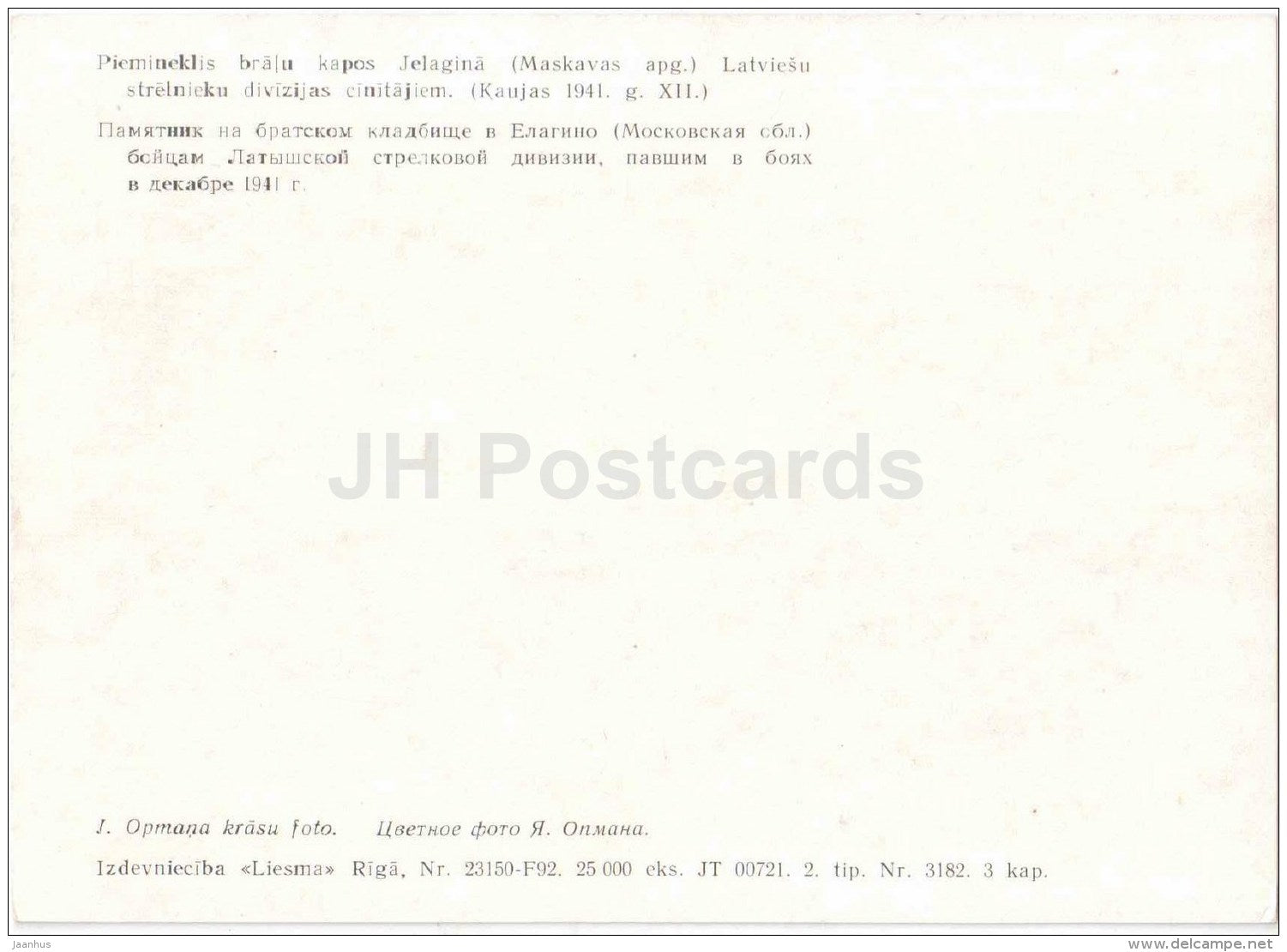 Denkmal auf dem Bruderfriedhof in Yelagino – Lettische Schützendivision – Zweiter Weltkrieg – Russland UdSSR – unbenutzt