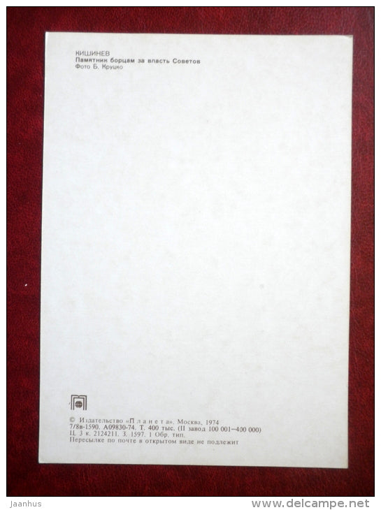 Denkmal für Kämpfer für die Sowjetmacht – Chisinau – Kischinjow – 1974 – Moldawien UdSSR – unbenutzt