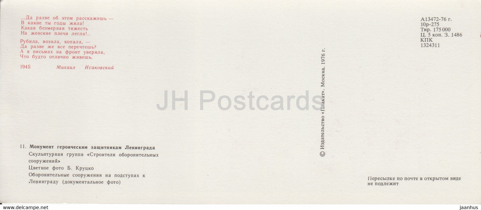 Denkmal für die heldenhaften Verteidiger Leningrads – Verteidigungsbauer – Militär – Denkmal – 1976 – Russland UdSSR – unbenutzt