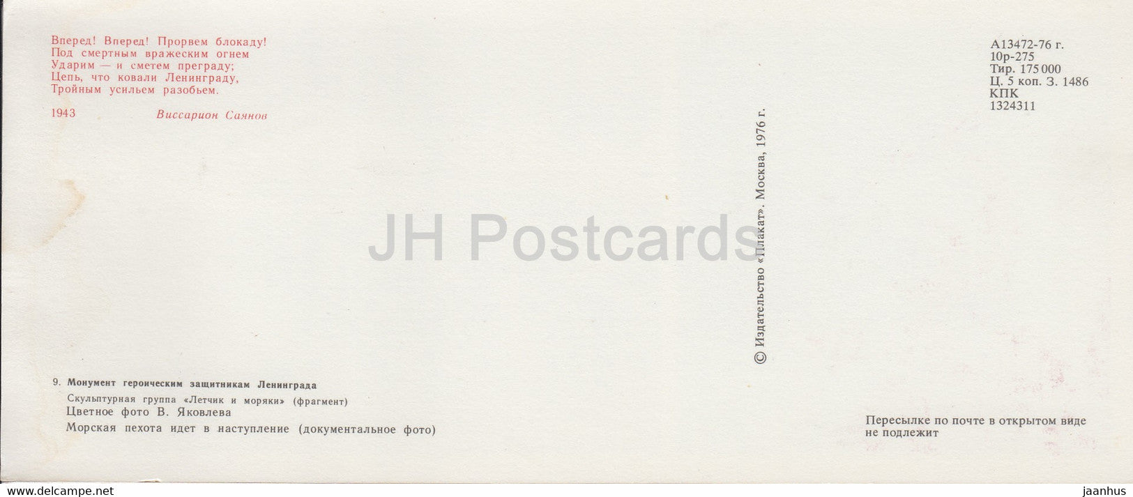 Denkmal für die heldenhaften Verteidiger Leningrads – Piloten und Matrosen – Marinesoldaten – Denkmal – 1976 – Russland UdSSR – unbenutzt