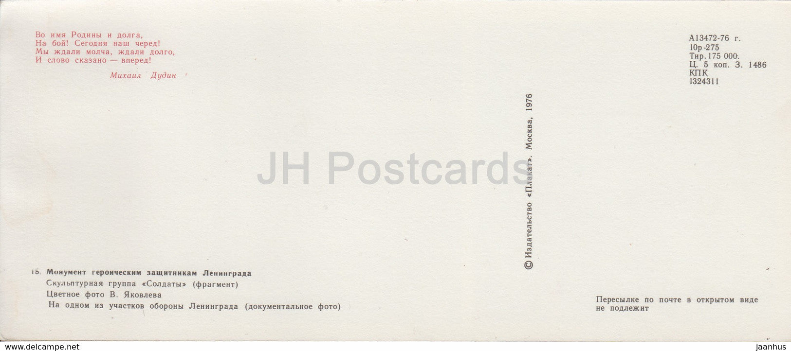 Denkmal für die heldenhaften Verteidiger Leningrads – Soldaten – Kanone – Denkmal – 1976 – Russland UdSSR – unbenutzt