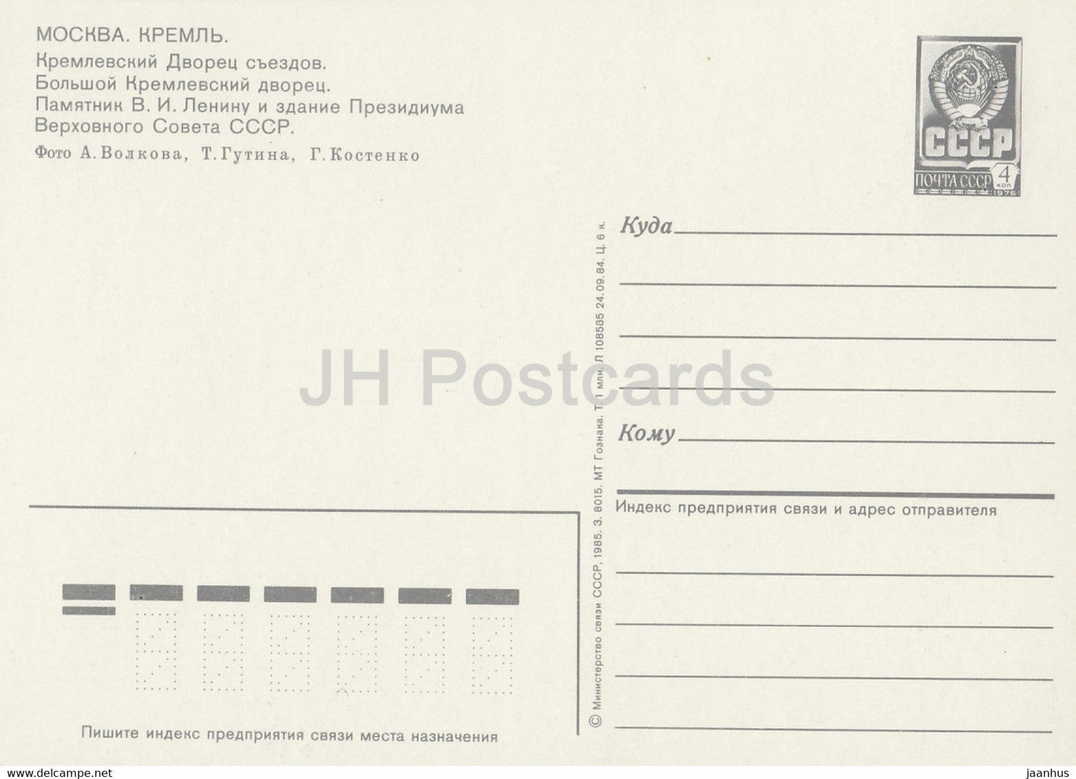 Moskau - Kreml-Kongresspalast - Kremlpalast - Lenin-Denkmal-Ganzsache - 1985 - Russland UdSSR - unbenutzt