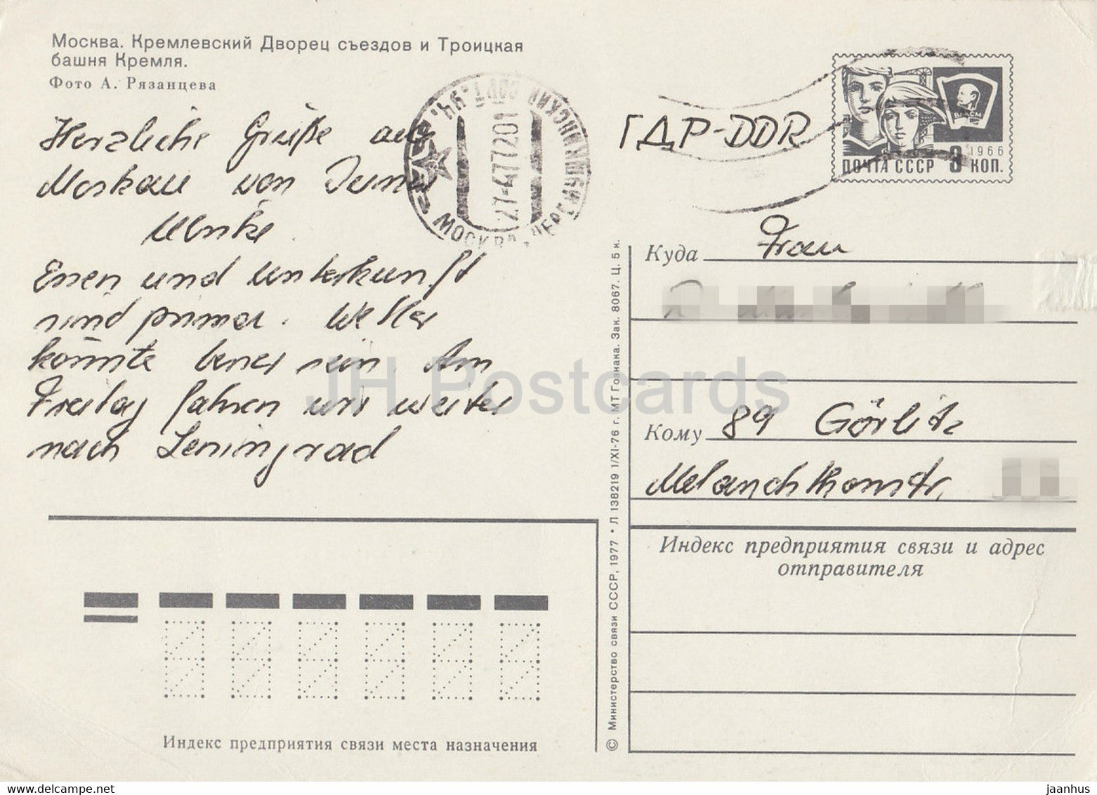 Moskau - Kongresspalast - Troizkaja-Turm - Ganzsache - 1977 - Russland UdSSR - gebraucht