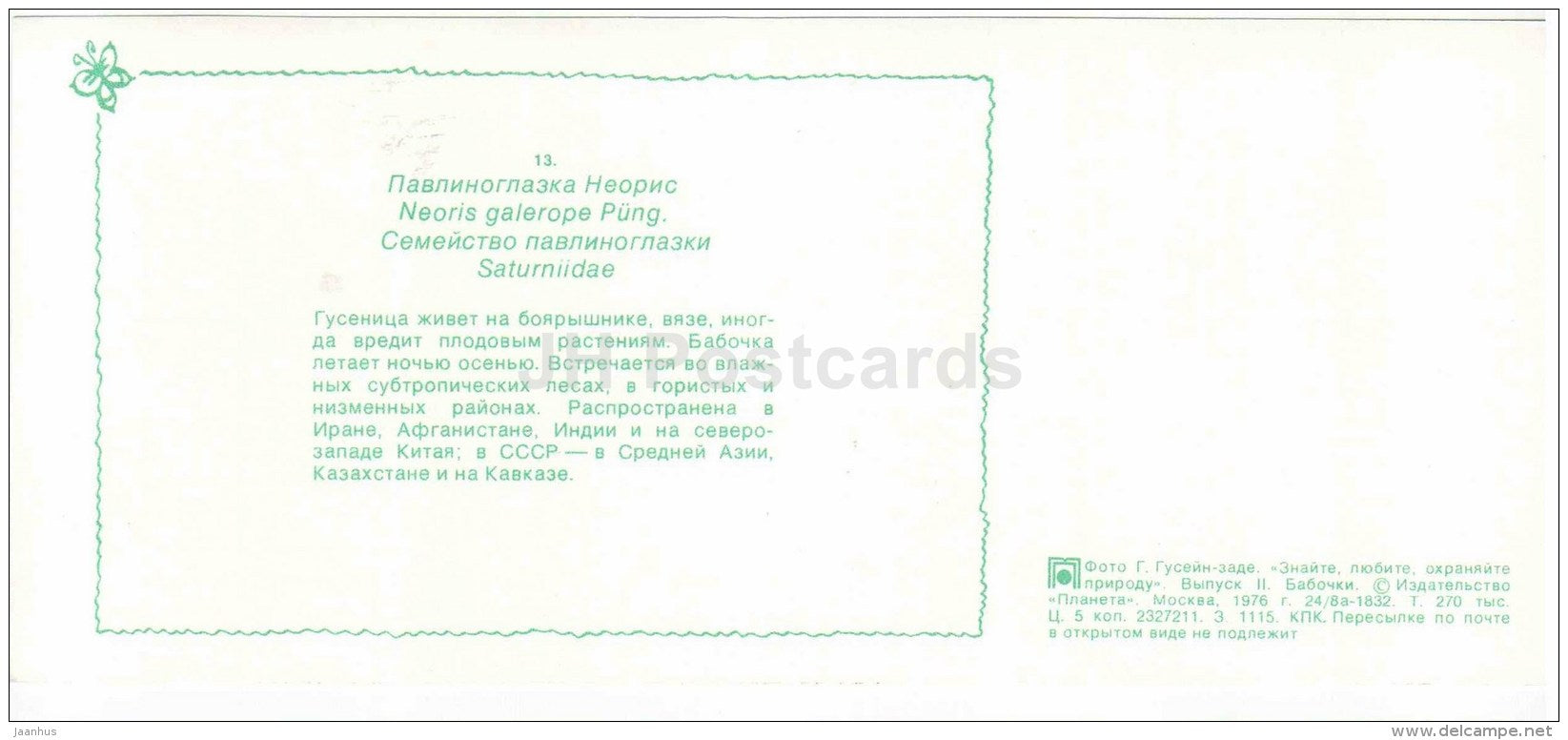 Neoris Galerope – Schmetterling – 1976 – Russland UdSSR – unbenutzt