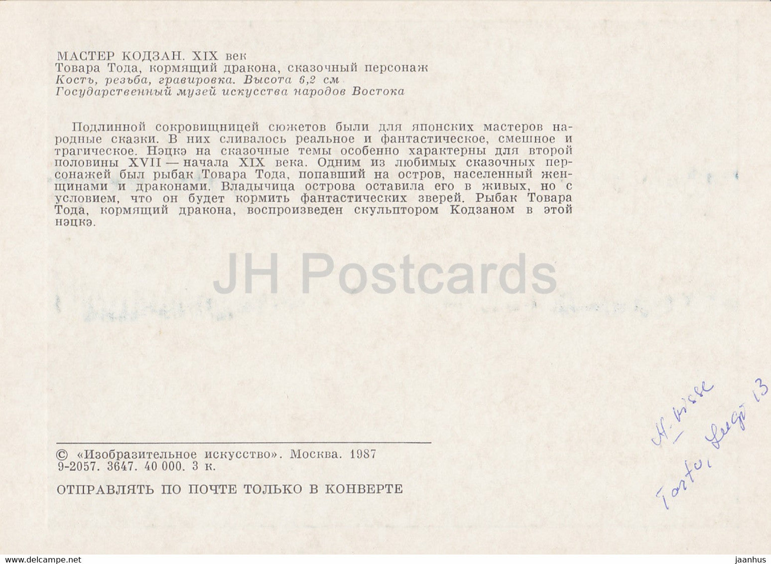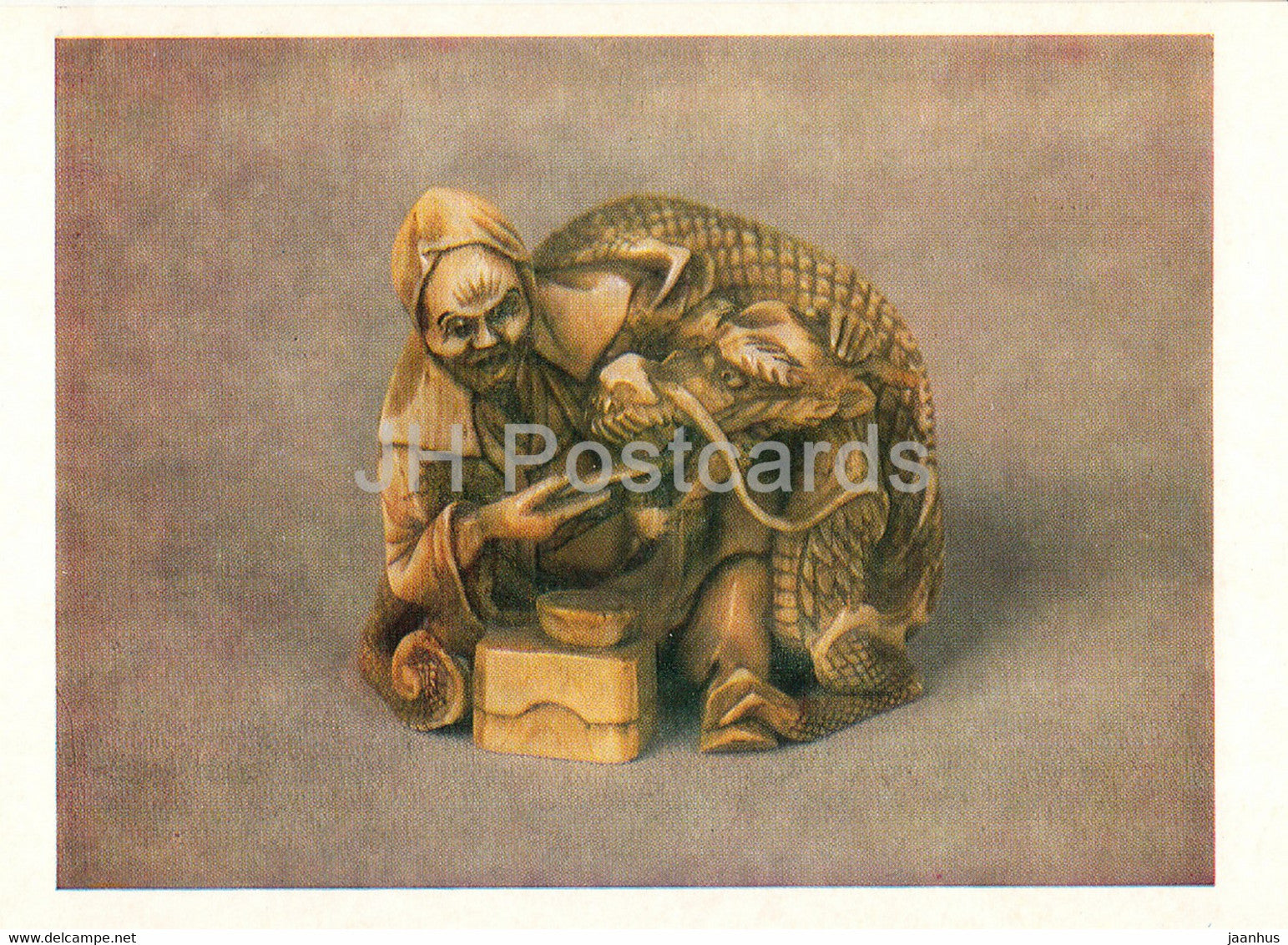 Netsuke von Meister Kodzan – Tawara Toda füttert Dracon – Knochen – japanische Kunst – 1987 – Russland UUSR – unbenutzt