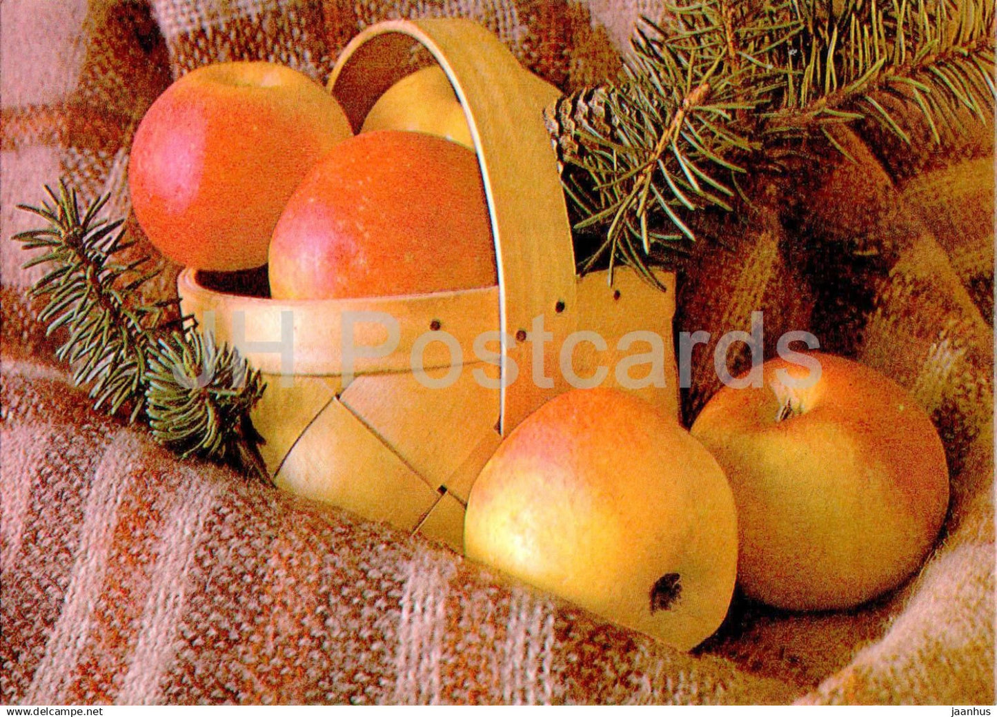 Neujahrsgrußkarte - 1 - Äpfel - Holzkorb - 1989 - Estland UdSSR - gebraucht