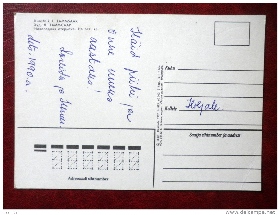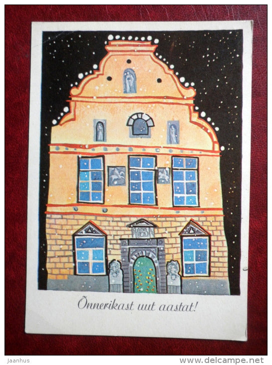 Neujahrsgrußkarte – von J. Tammsaar – Gebäude in der Altstadt – 1982 – Estland UdSSR – gebraucht