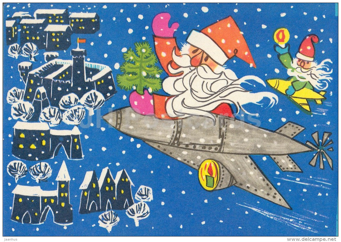 Neujahrsgrußkarte von S. Kalev – 1 – Weihnachtsmann – Flugzeug – 1973 – Estland UdSSR – gebraucht