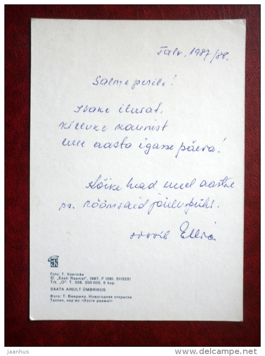 Neujahrsgrußkarte – Weihnachtsbaum im Wald – 1987 – Estland UdSSR – gebraucht